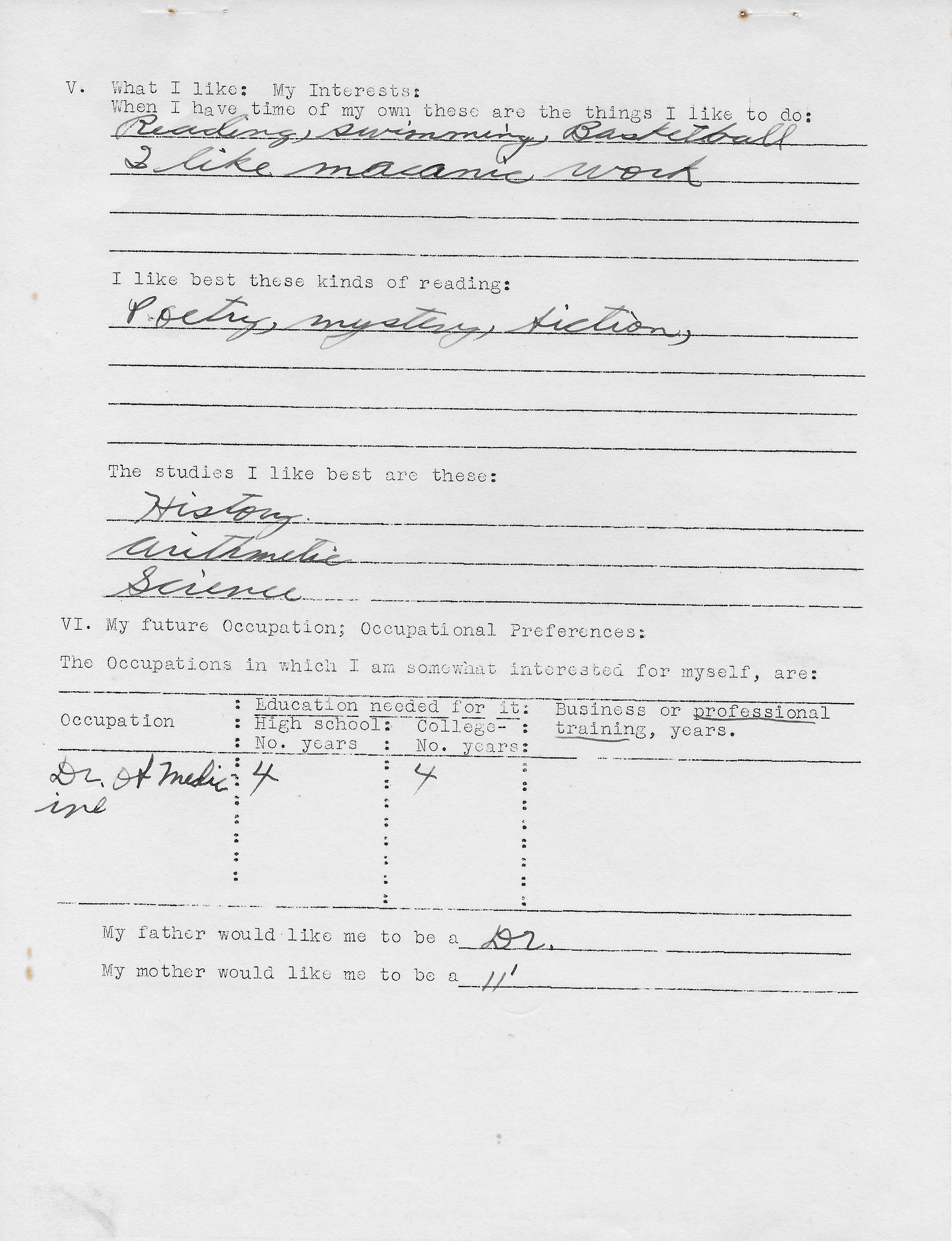 The occupations in which I am somewhat interested for myself are: “Dr. of Medicine”