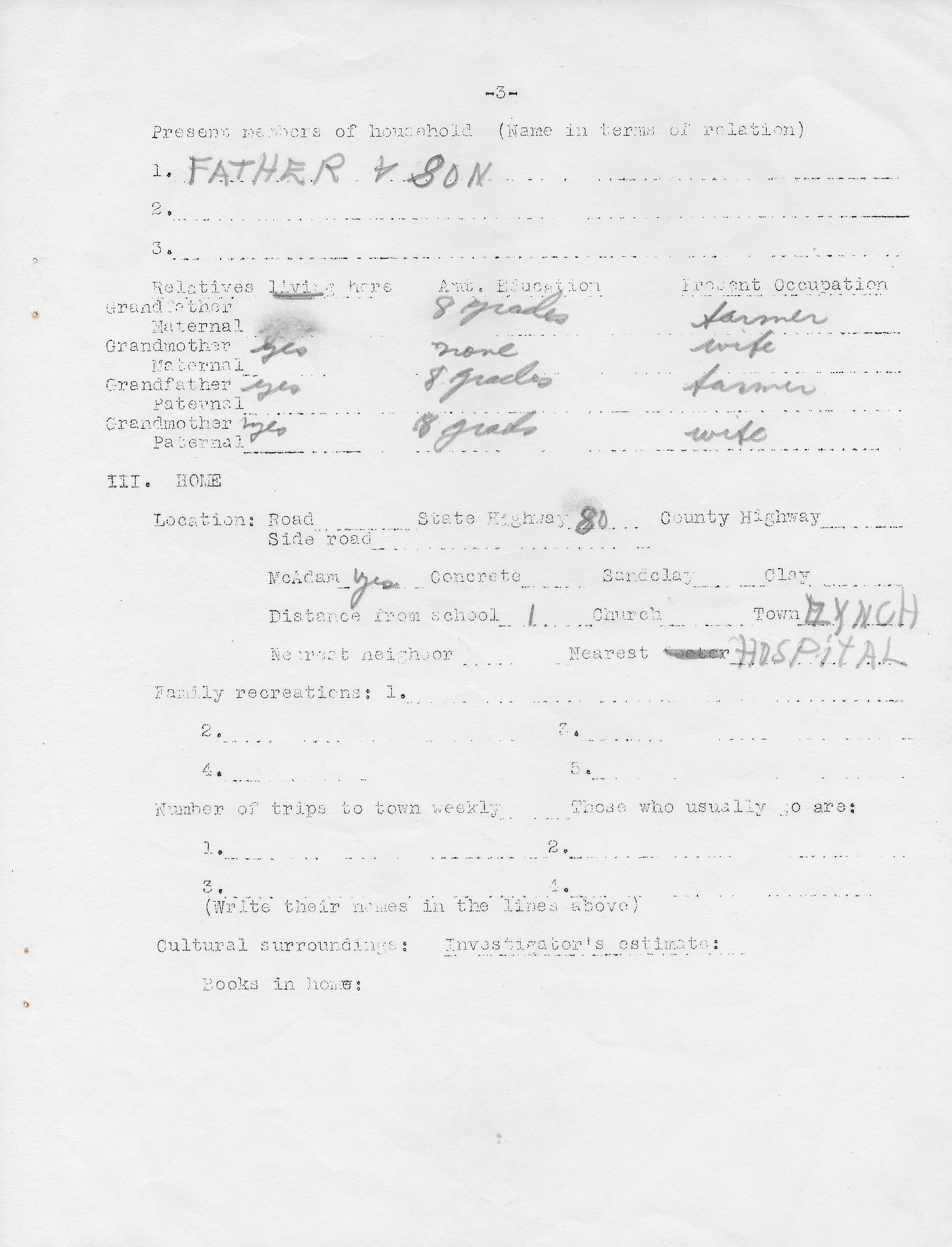 Relatives living: Both grandfathers – 8th grade education – farmers
