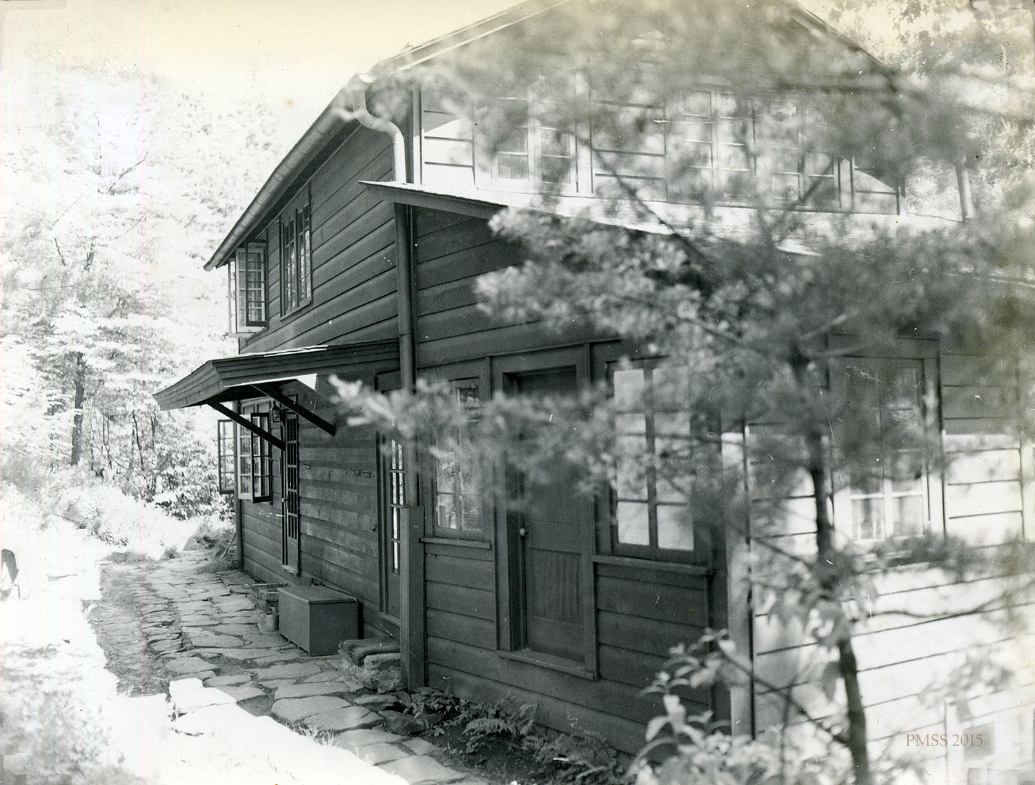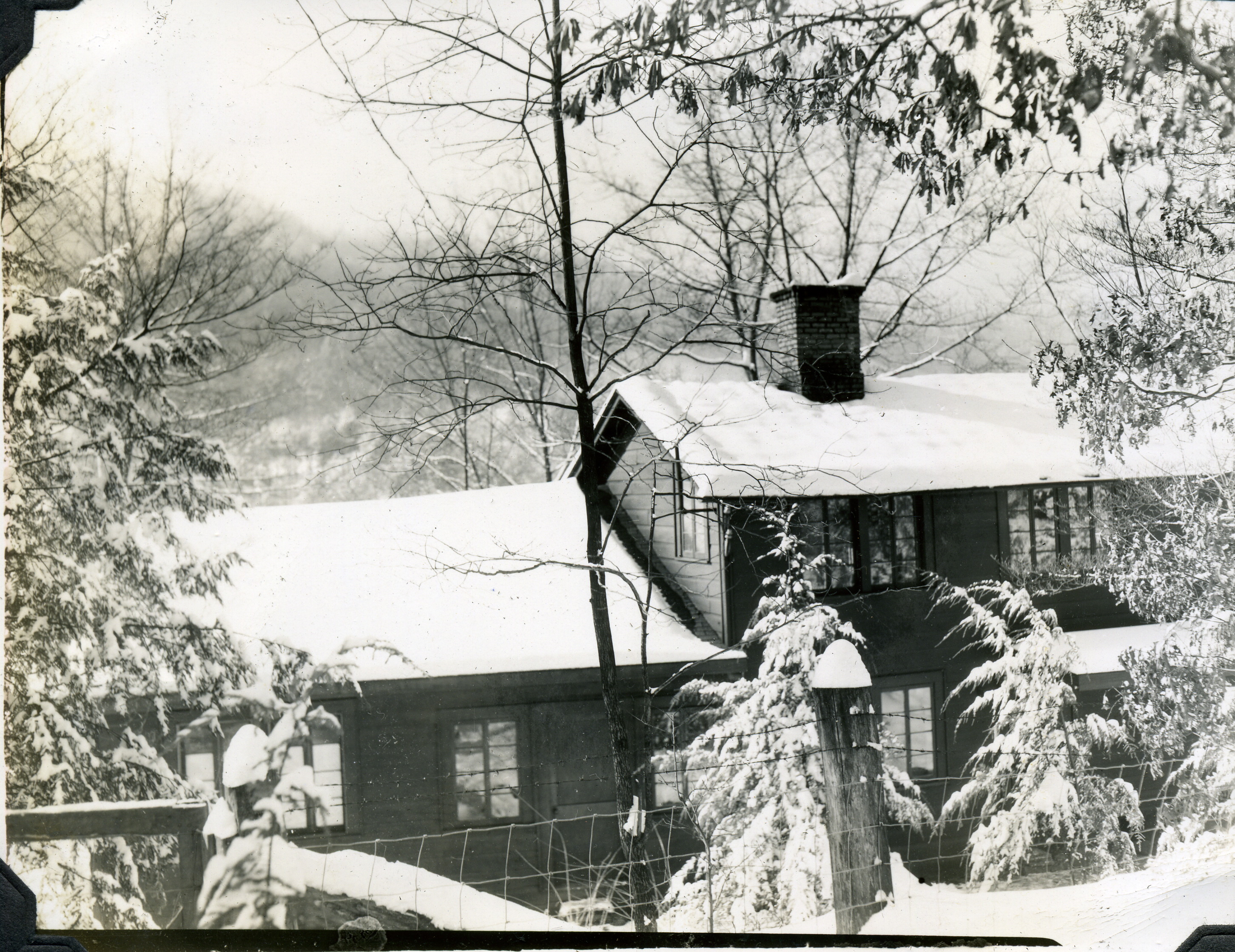 WEST WIND (1941) Designed by Mary Rockwell Hook with an original flat roof. Roofline changed in late 1940s. (1946?)  Planned as Girl’s Dormitory. Hospital from 1949 to mid-1950s. Guest lodging.