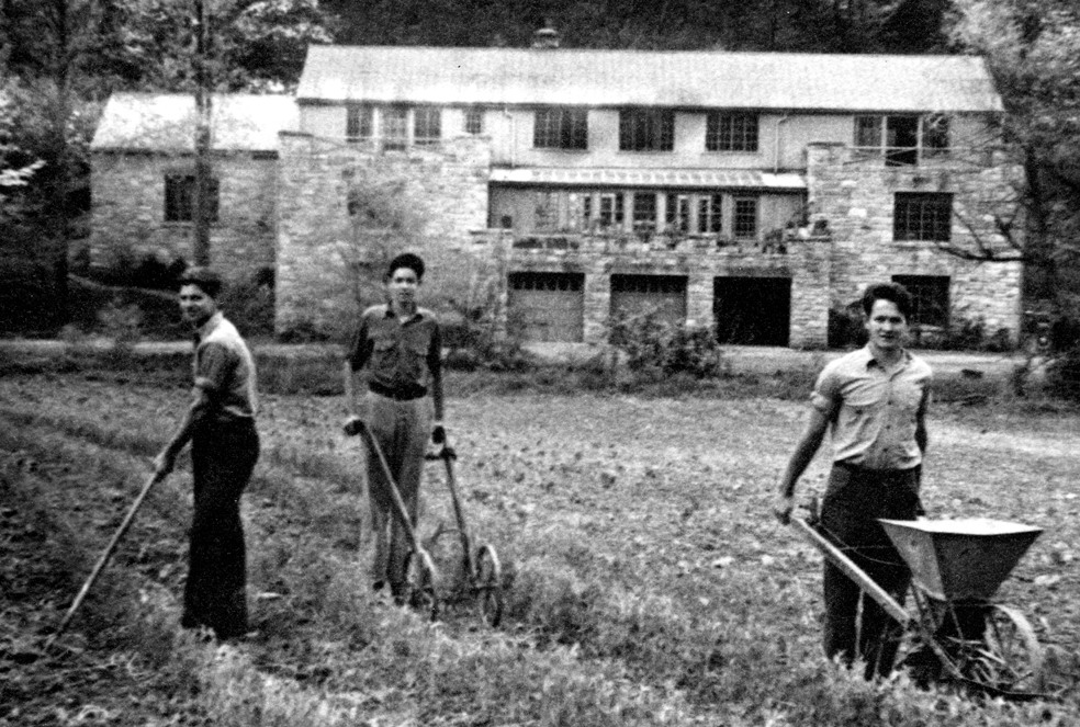 LAUREL HOUSE II  (1940) Designed by Mary Rockwell Hook to replace her original Laurel House I (1914) which burned in 1940. Kitchen and central dining space, staff apartments. Co-op store. Meeting space. Later Guest lodging.