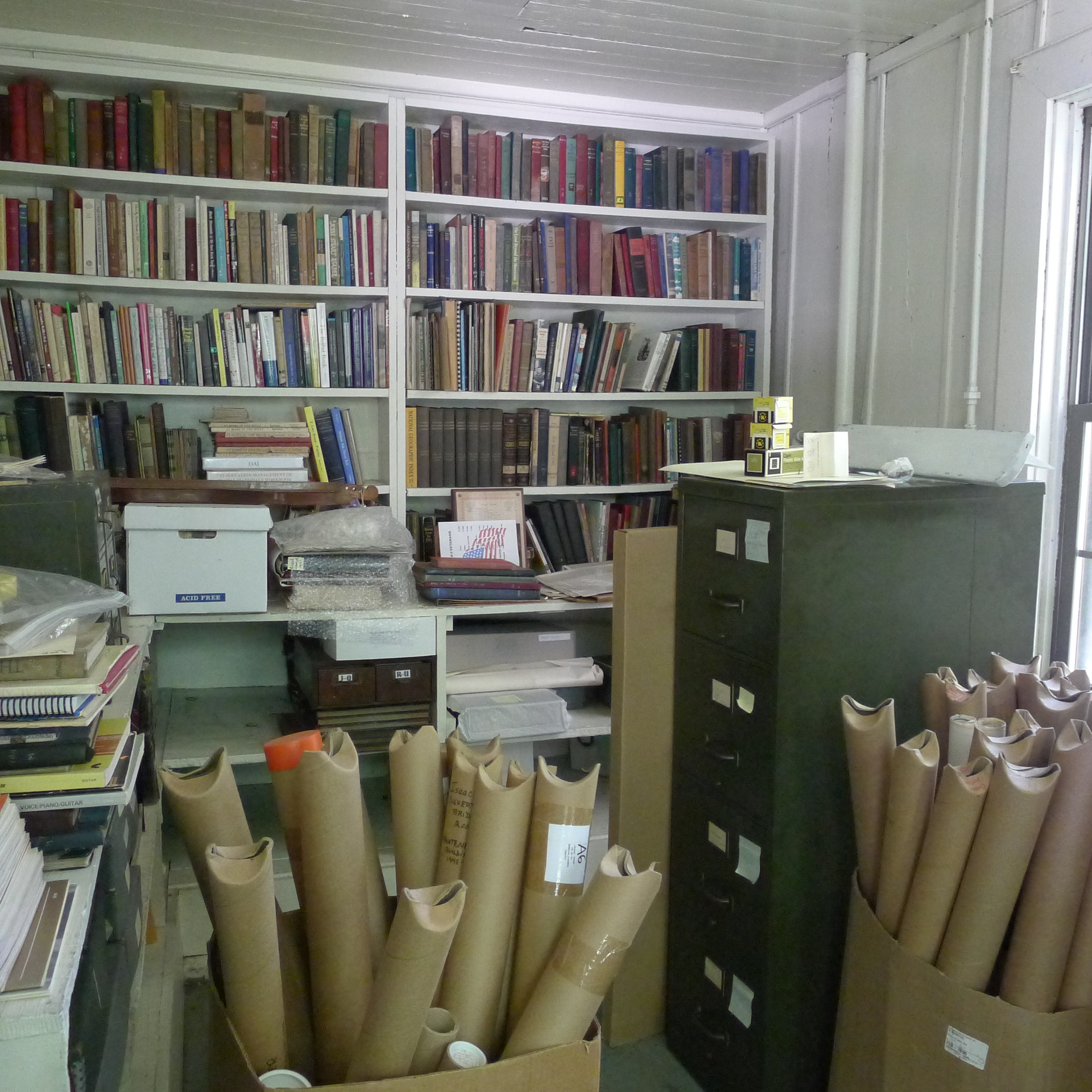 - View of Archival Collections space. Boys House. Archive/Library room.
