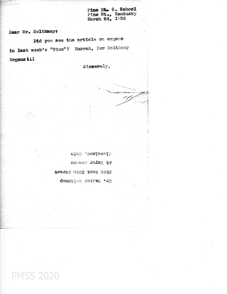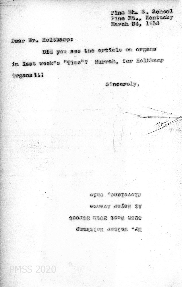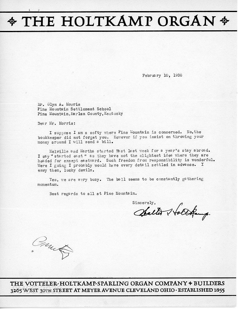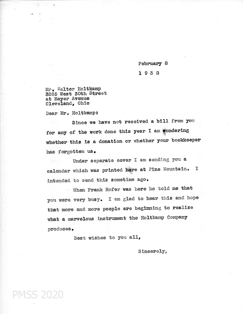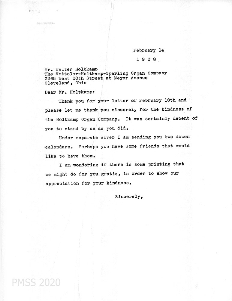 [For a LIST OF THE CONTENTS of this correspondence, go to CHAPEL Holtkamp Organ.]