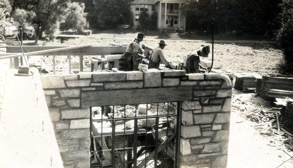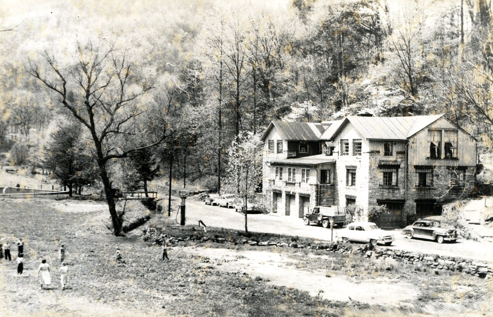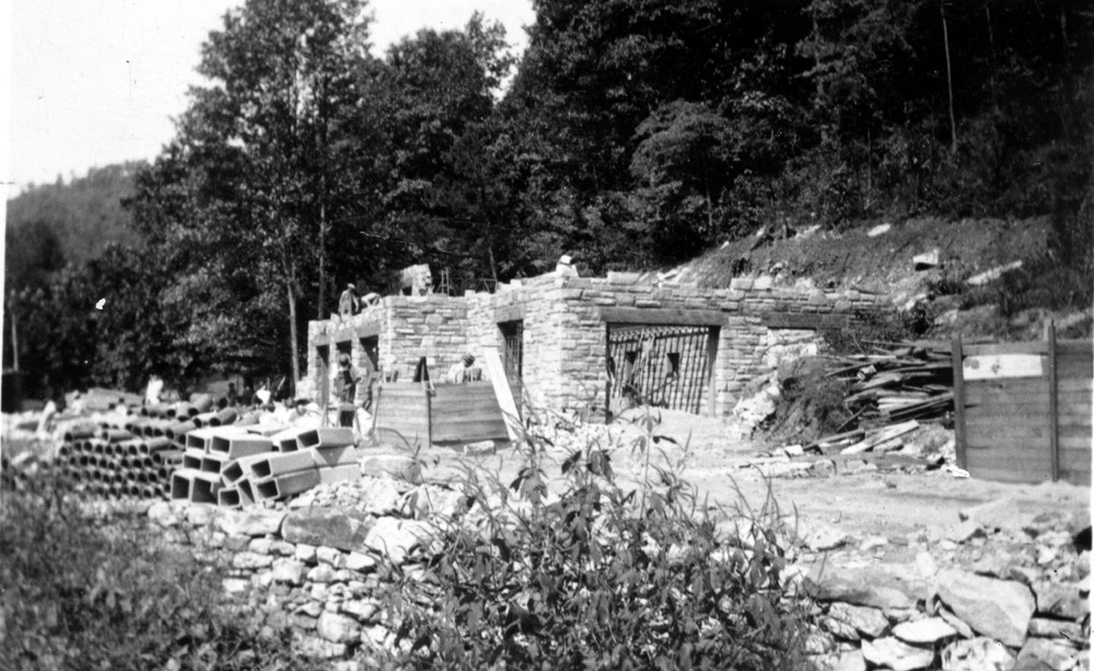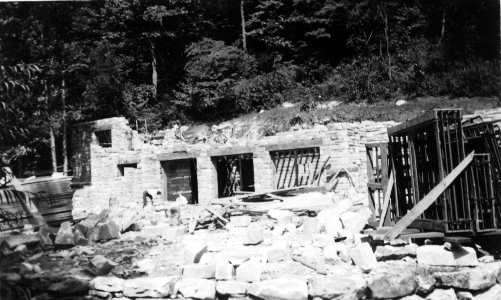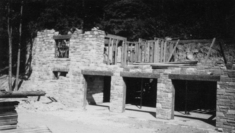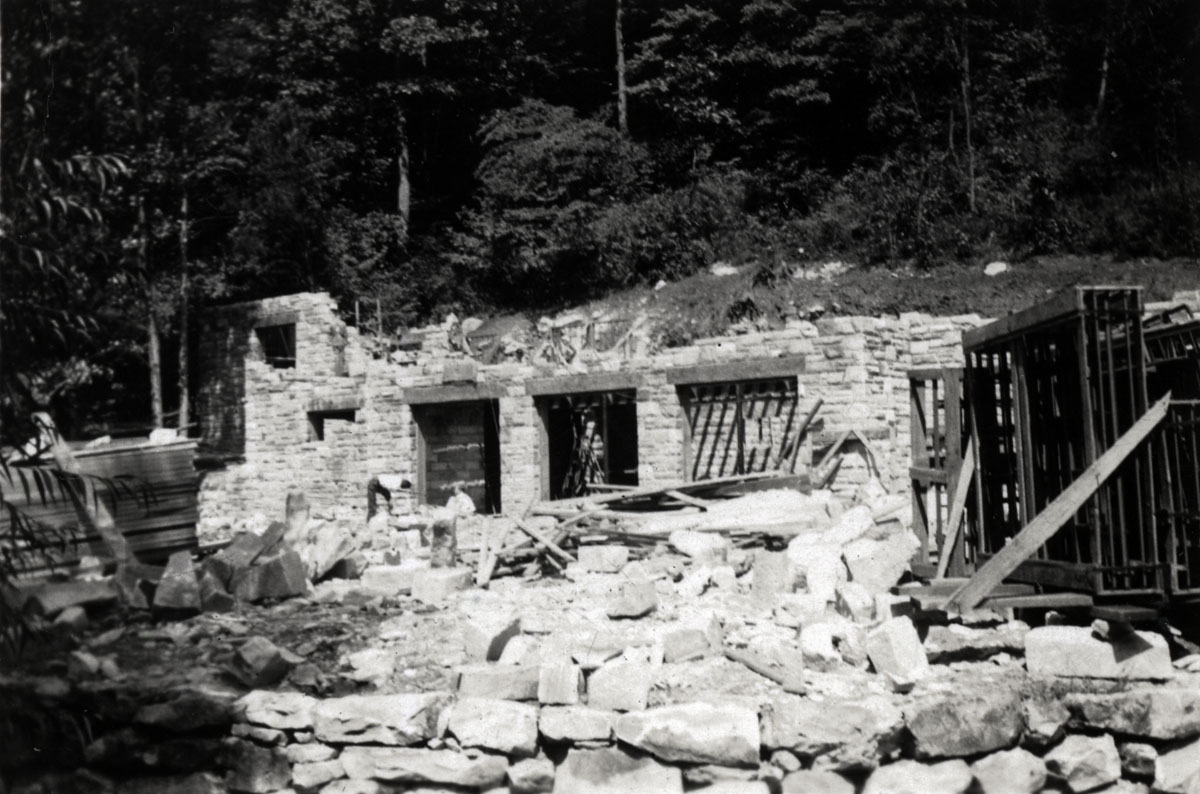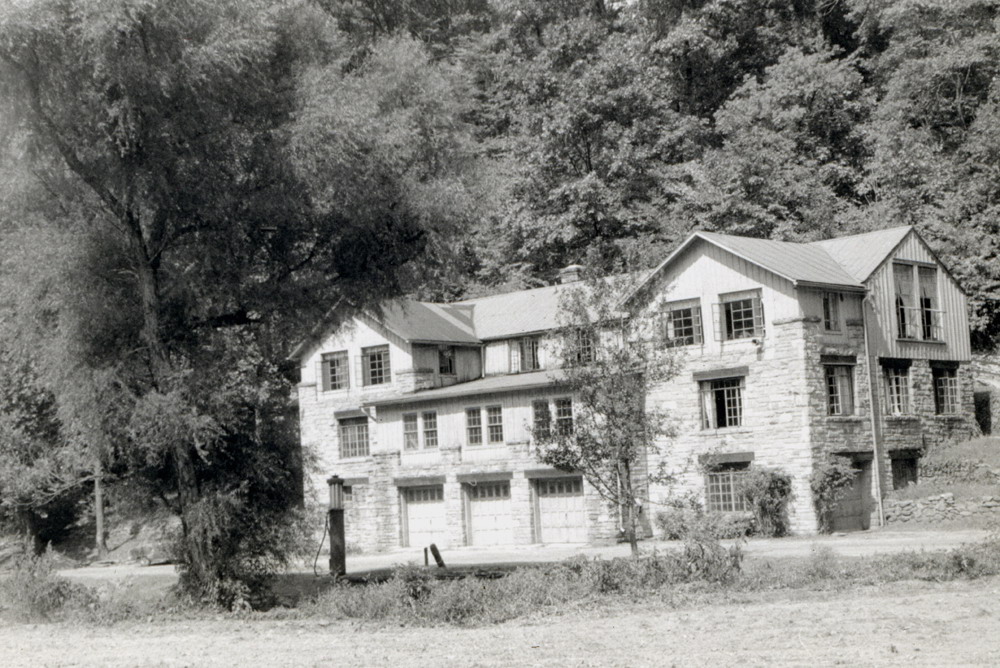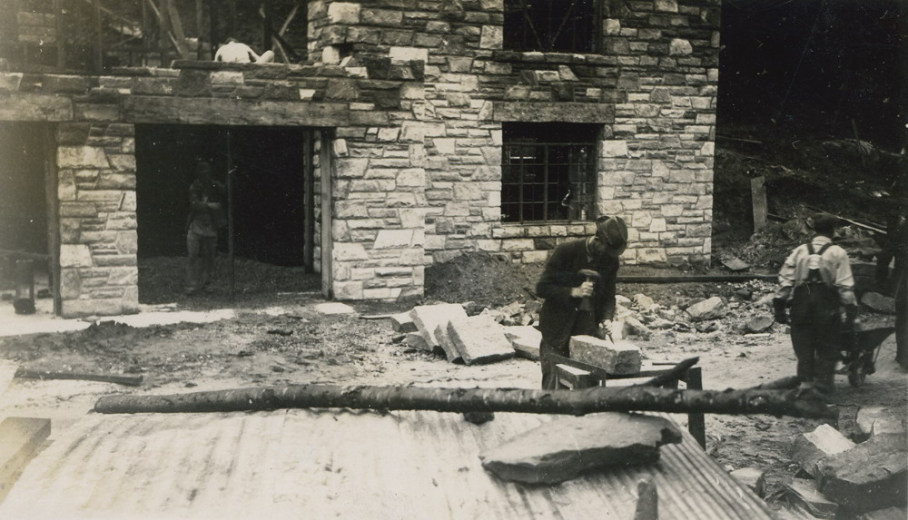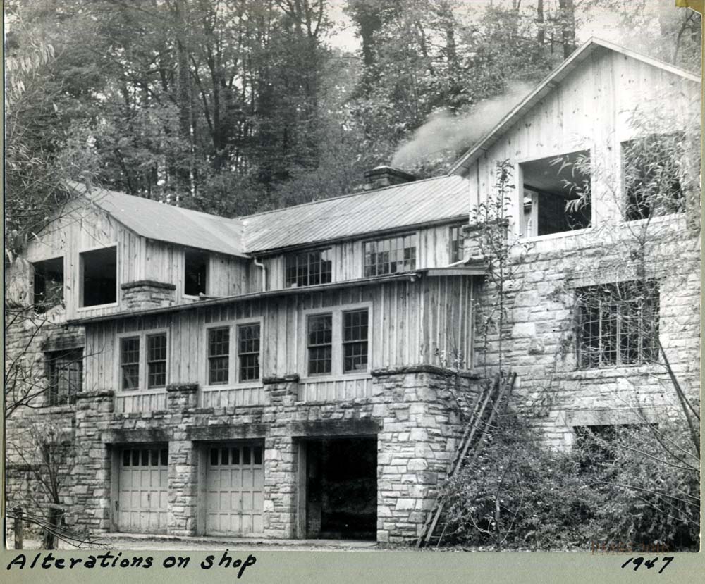 Draper Industrial Building with creek rockwork, 1930s. cobb_alice_043