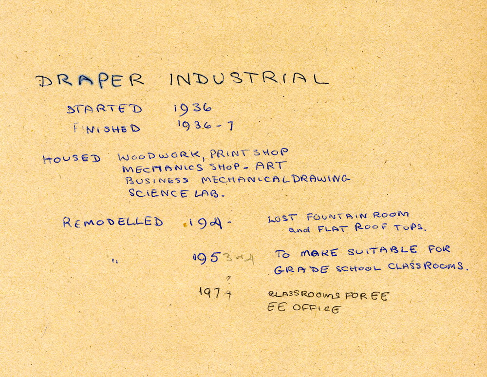 - Draper Building 1954-55 Community School redesign. rf_draper_indust_001