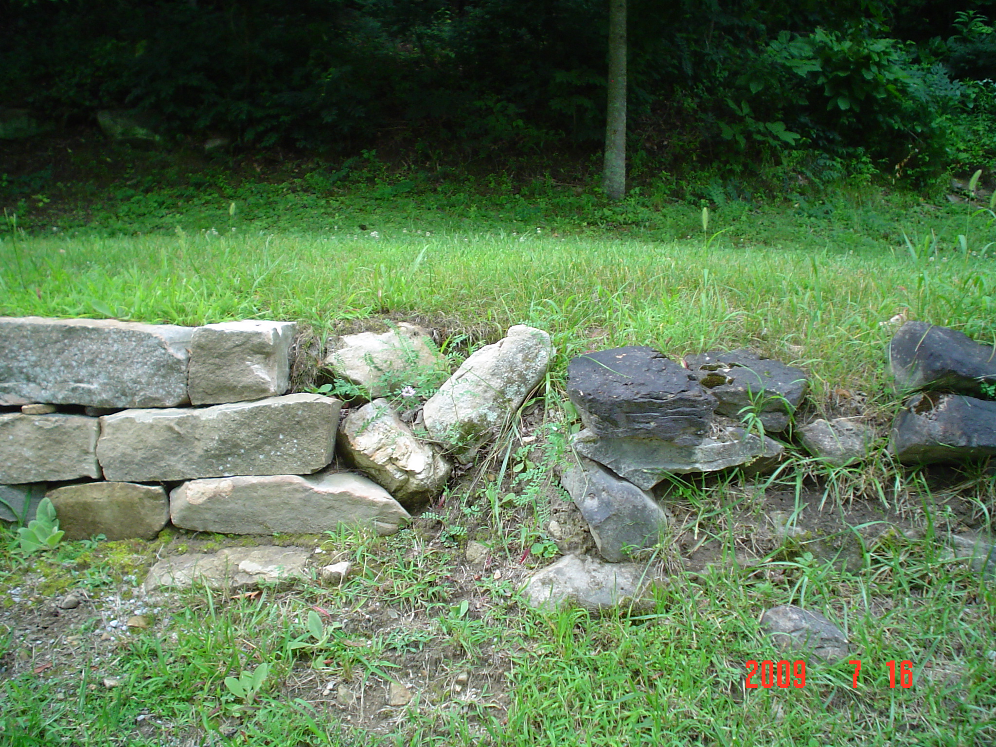 - Rockwall before dry-stack reconstruction on main entry road bordering Isaasc’s Creek. rockwork_057_draper_old_wall