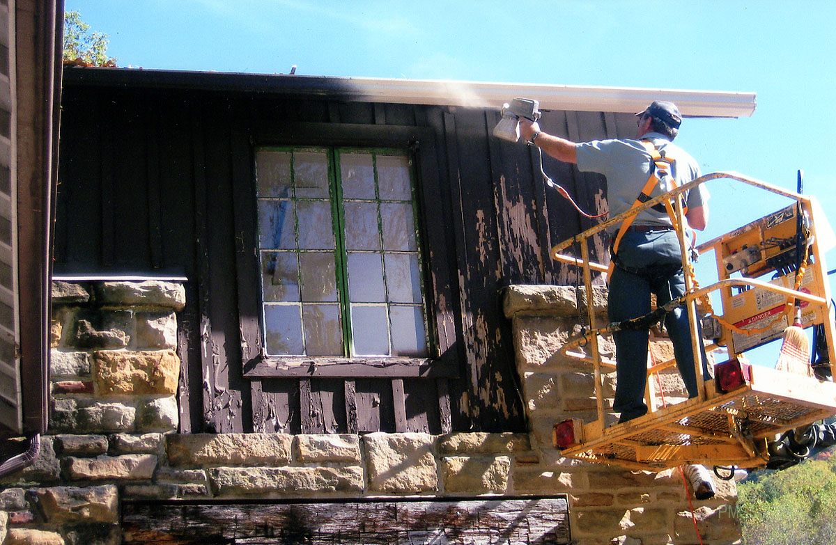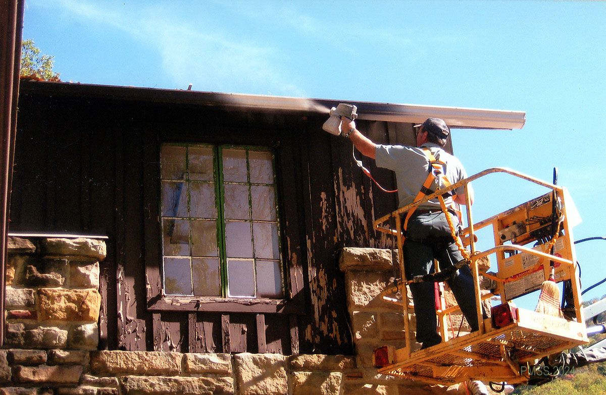 TAGS: Pine Mountain Settlement School, Draper Industrial Arts Building, restoration, painting, stone masonry, building maintenance, 1970s
