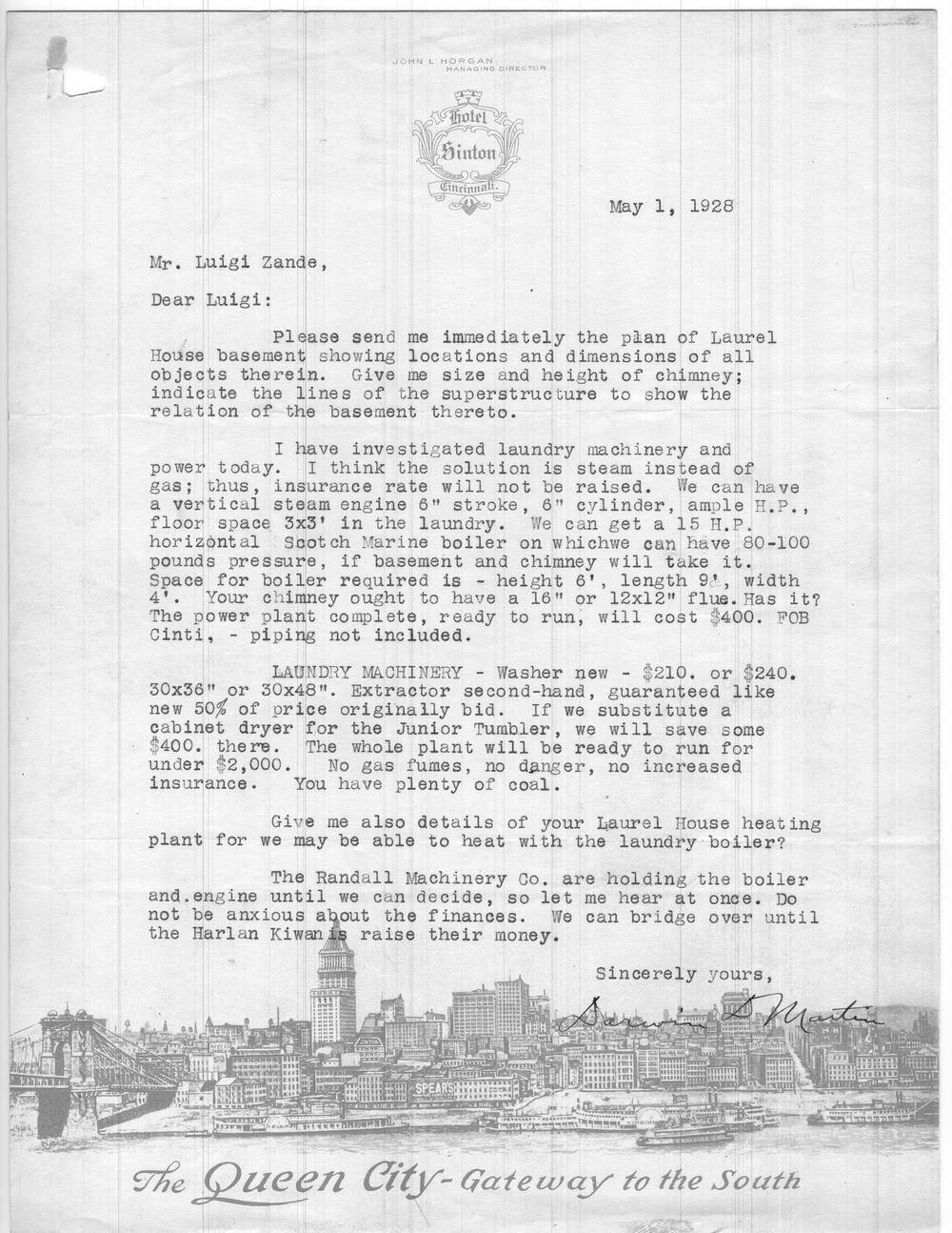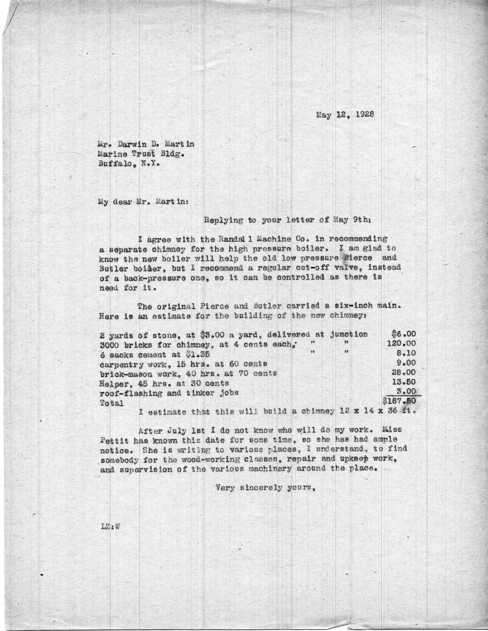 - 1928-05-12 To D.D. Martin from Luigi Zande, 1 page. RE: plans for Laurel House basement and laundry. [martin_017.jpg]