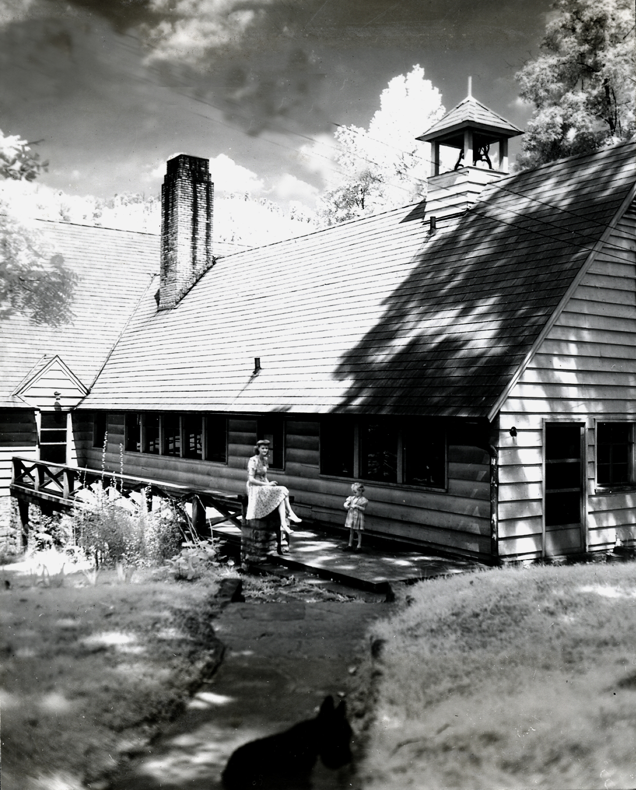 Both buildings are the design of Mary Rockwell Hook, the School’s lead architect. Built in 1940 to replace the destroyed building, Laurel House II was constructed on the same site as the earlier building, but the two structures are very different in design. Theda Howard’s description of six gables captures the more angular nature of the new Laurel House.