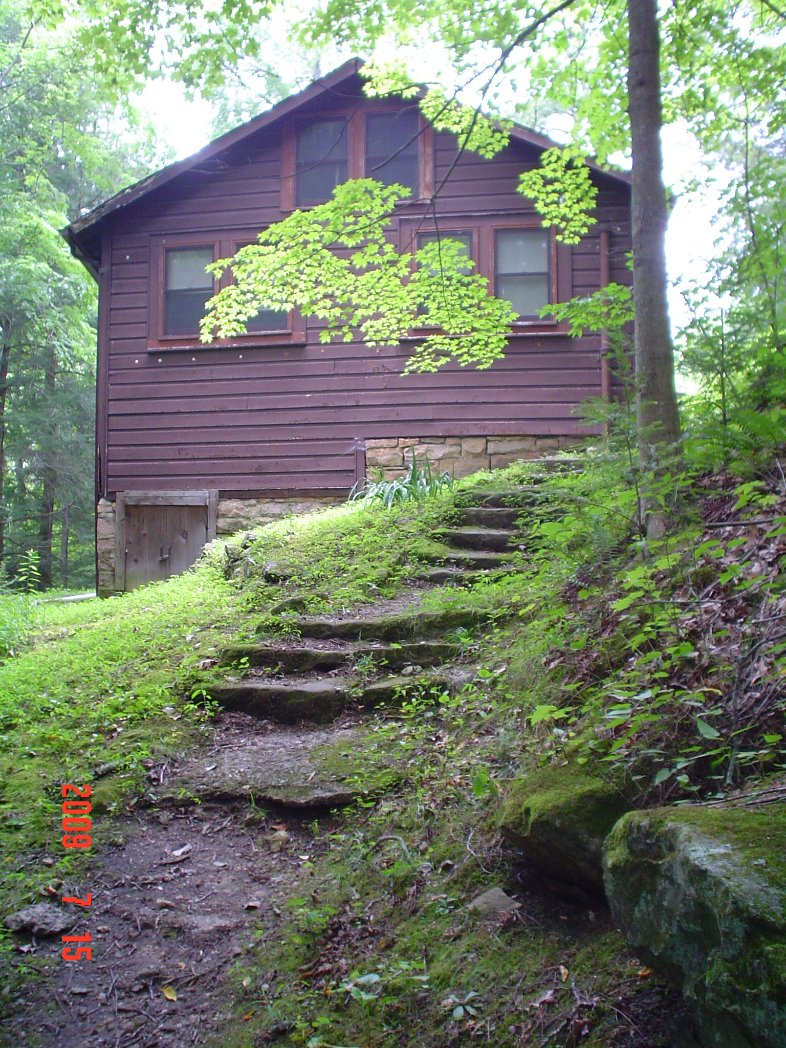 - Country Cottage (Practice House, Model Home).Stone steps beside East entrance.