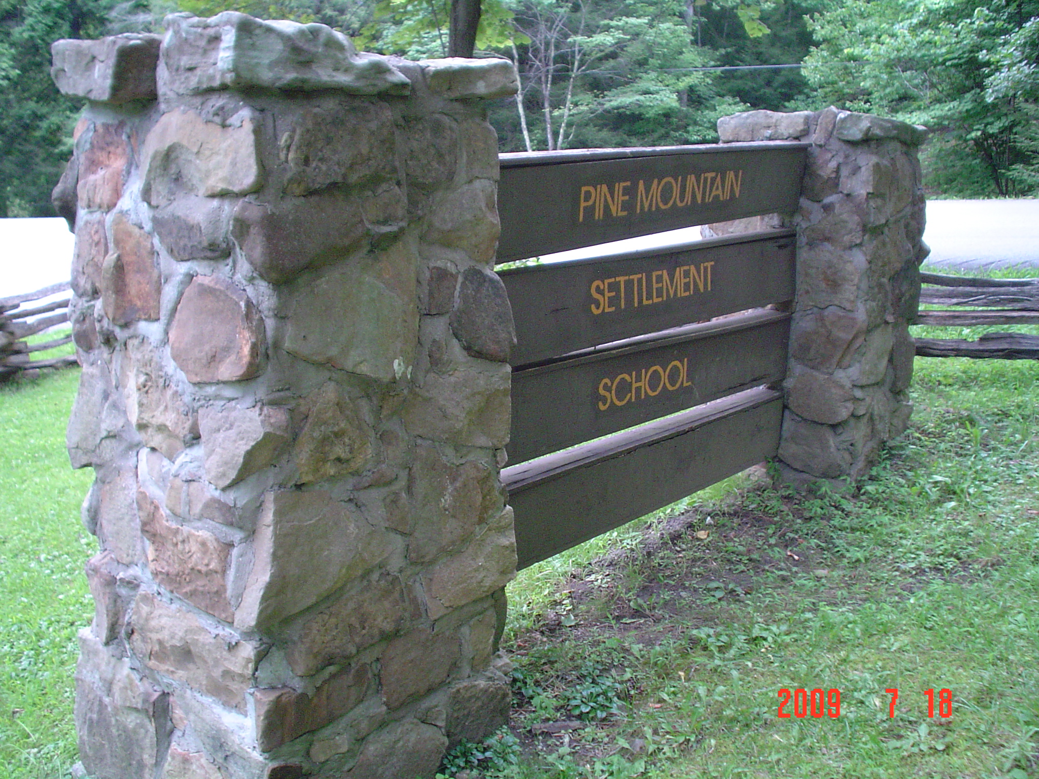 Pine Mountain is known for the remarkable stonework in its buildings and in the landscaping. Several names in the written record o. f the institution suggest workers who were proficient at the trade. One of those is Andy Dorsky [Andy Drozky ?], an Austrian who came to the Pine Mountain valley from one of the county coal camps or possibly from Whitesburg which had many Italian and European mason employed to build structures for the mining community. He followed the consummate rock-work of the mason, Luigi Zande who married Ethel de Long, a founder of the Pine Mountain Settlement School in Harlan County, KY.