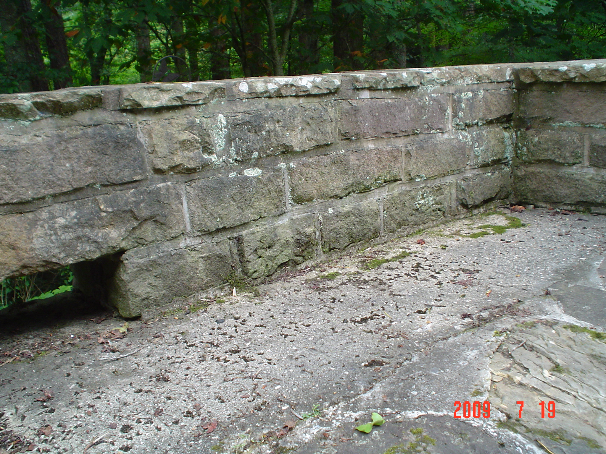 - Rockwall before dry-stack reconstruction on main entry road bordering Isaasc’s Creek. rockwork_058_draper_old_new_wall