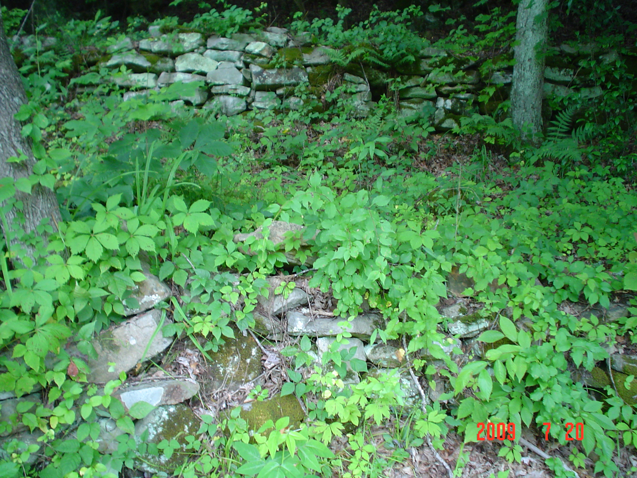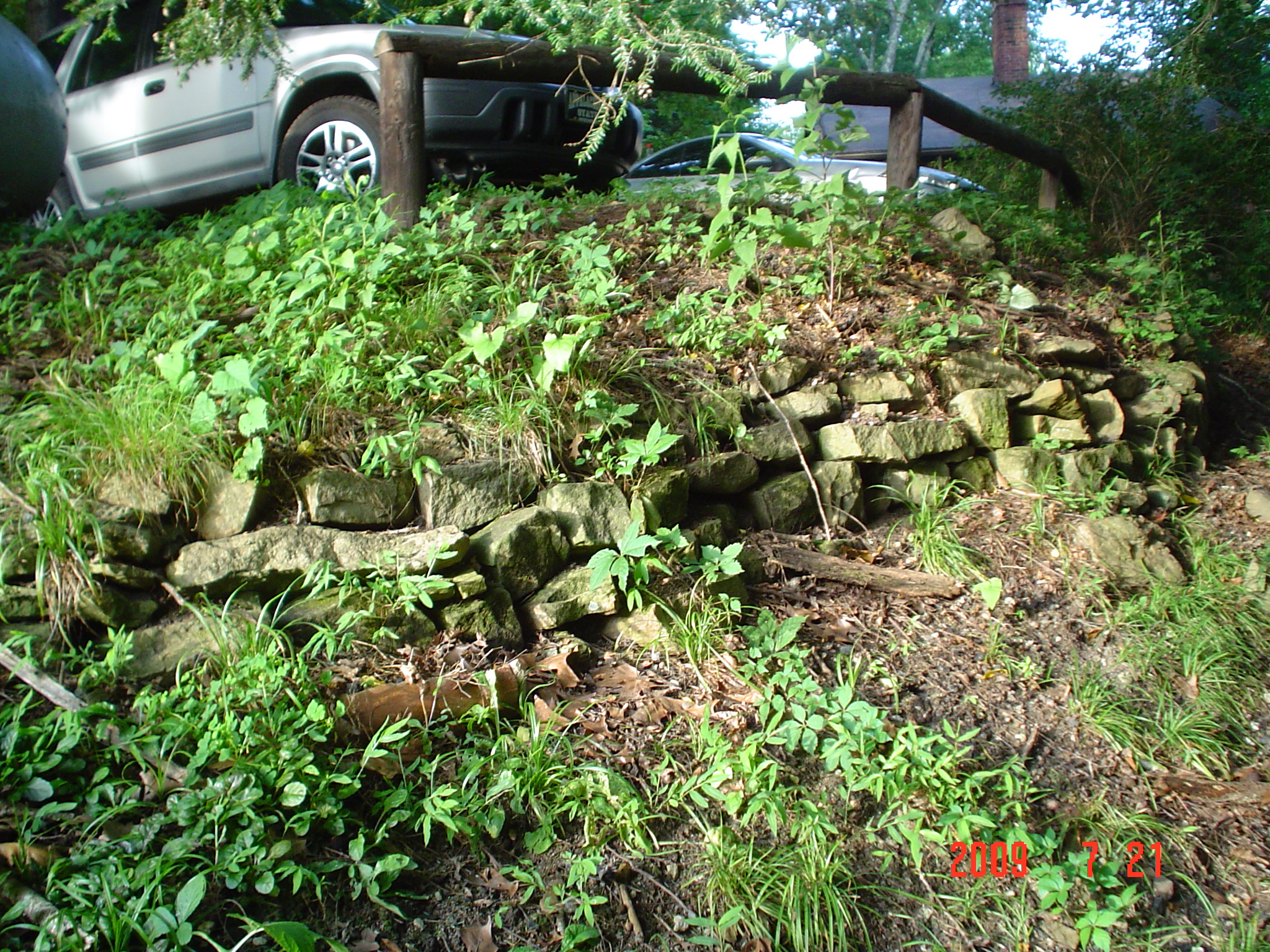 - Rockwall before dry-stack reconstruction on main entry road bordering Isaasc’s Creek. rockwork_057_draper_old_wall