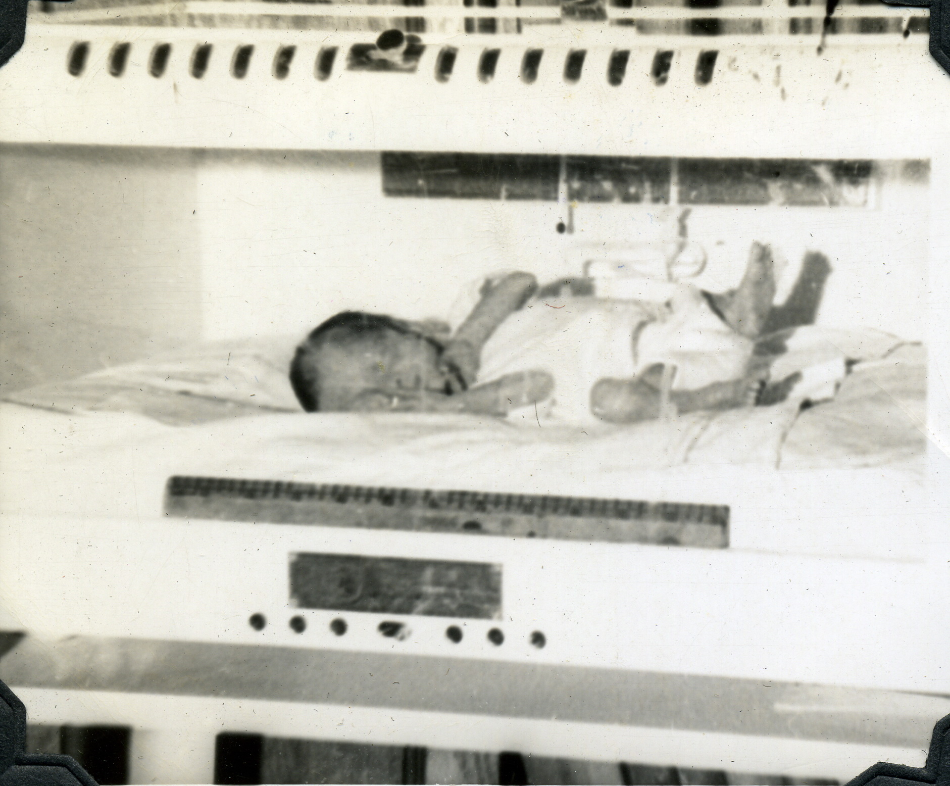 - Grace Rood Album II. Infant in incubator at new hospital in West Wind. [rood_142]