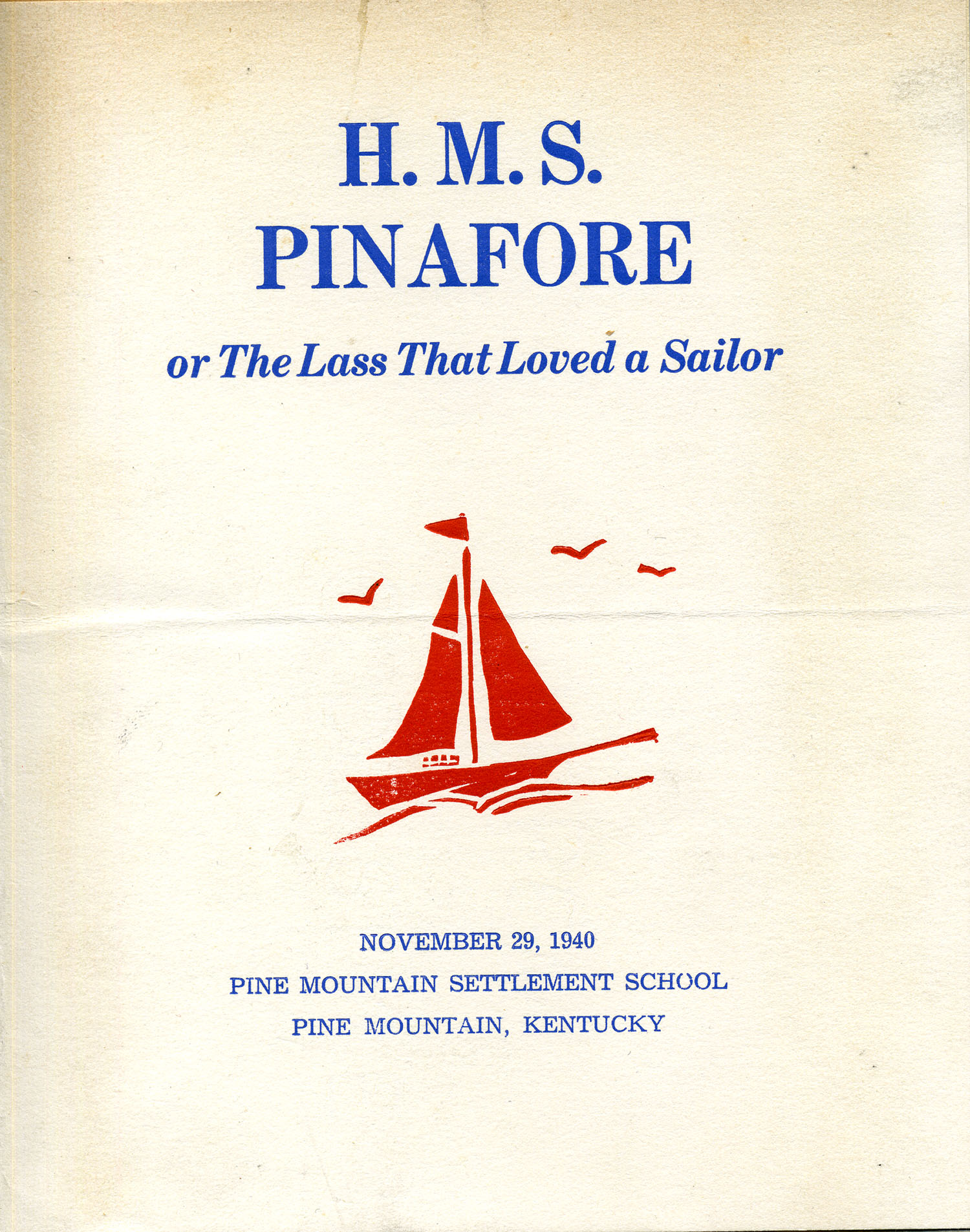 - “H.M.S. Pinafore or the Lass that Loved a Sailor,” Nov. 24, 1940. p.1. [hms_pinafore_001.jpg]