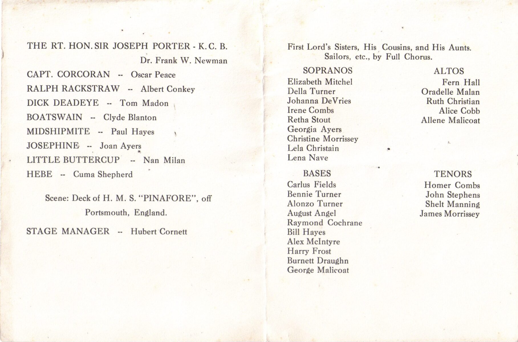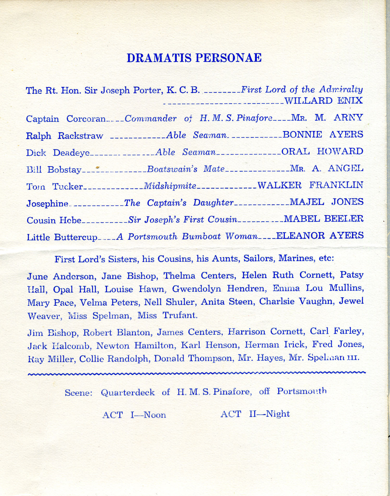 - “H.M.S. Pinafore or the Lass that Loved a Sailor,” Nov. 24, 1940. Cast, p. 2 [hms_pinafore_002.jpg]