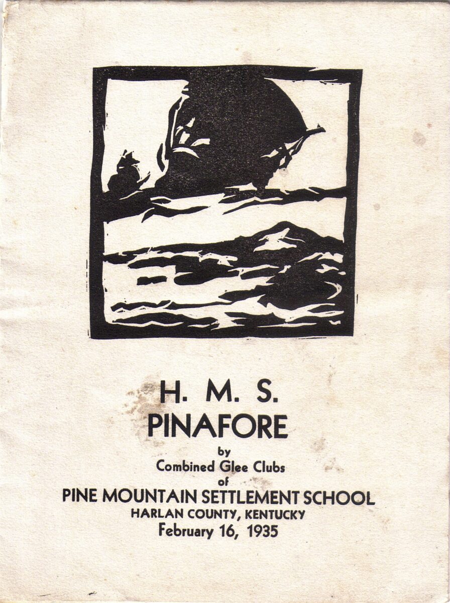 “H.M.S. Pinafore” productions occurred several times at Pine Mountain Settlement School. Although this two-act operetta, written by W.S. Gilbert and Arthur Sullivan, was a demanding musical piece, it never failed to please at both the audience and the performer level. The cast was comprised of staff and students. The joint effort was a practice that was often found in the School theater productions. By engaging all available campus dwellers, the audience was guaranteed and talent was found across all residents at the School.