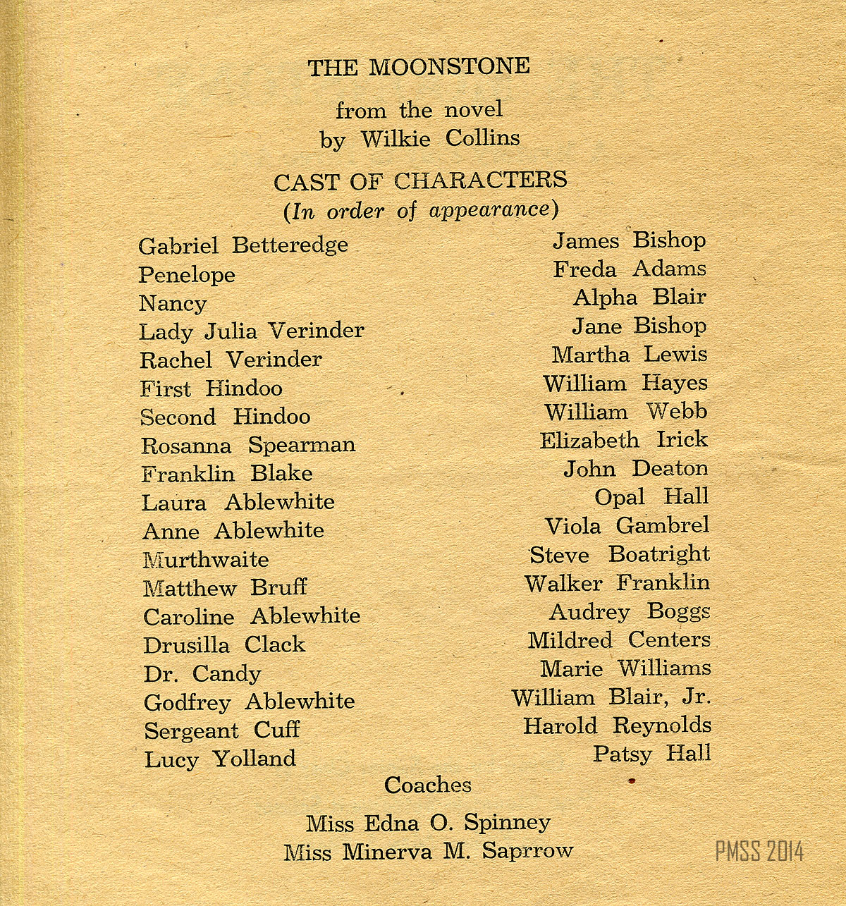 TAGS: Wilkie Collins, WWII, The Pine Cone, mystery novels, suspense novels, English detective novels, student performers, Edna O. Spinney, Minerva M. Sparrow