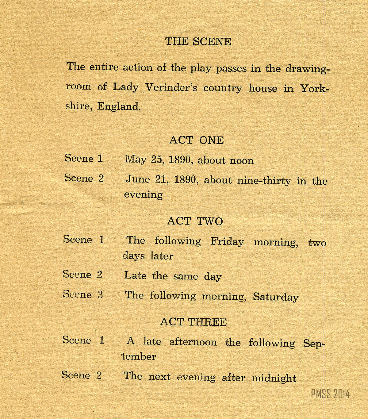 Like many of the plays during the Boarding School years, the production was the work of students with faculty assigned “coaching” roles. The two coaches for this production were two favorite staff members, Edna O. Spinney and Minerva M. Sparrow (misspelled in the program).
