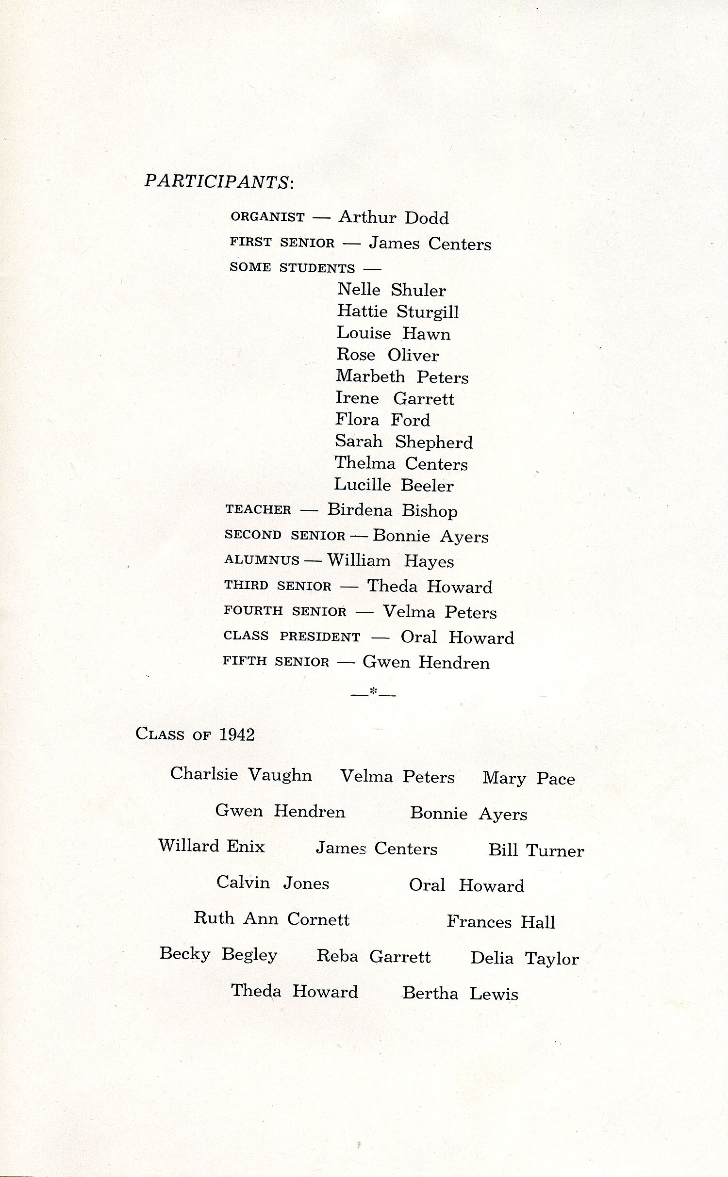 STUDENTS 1942 Graduating Class