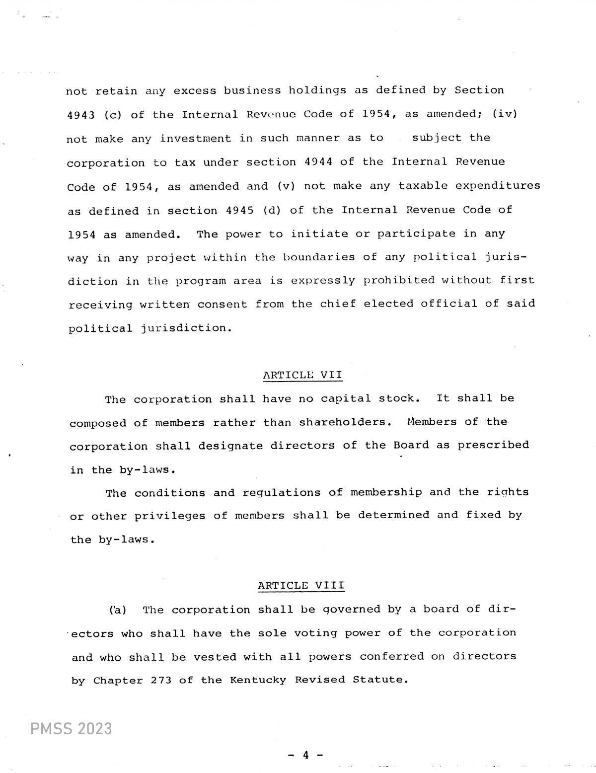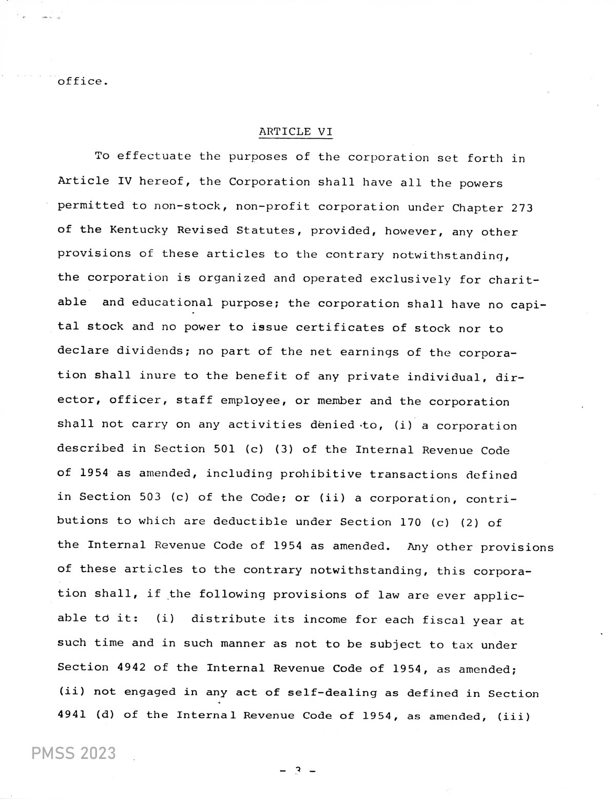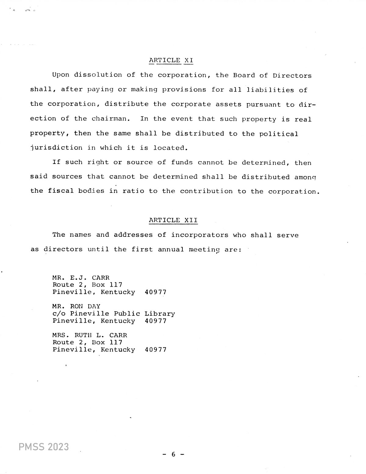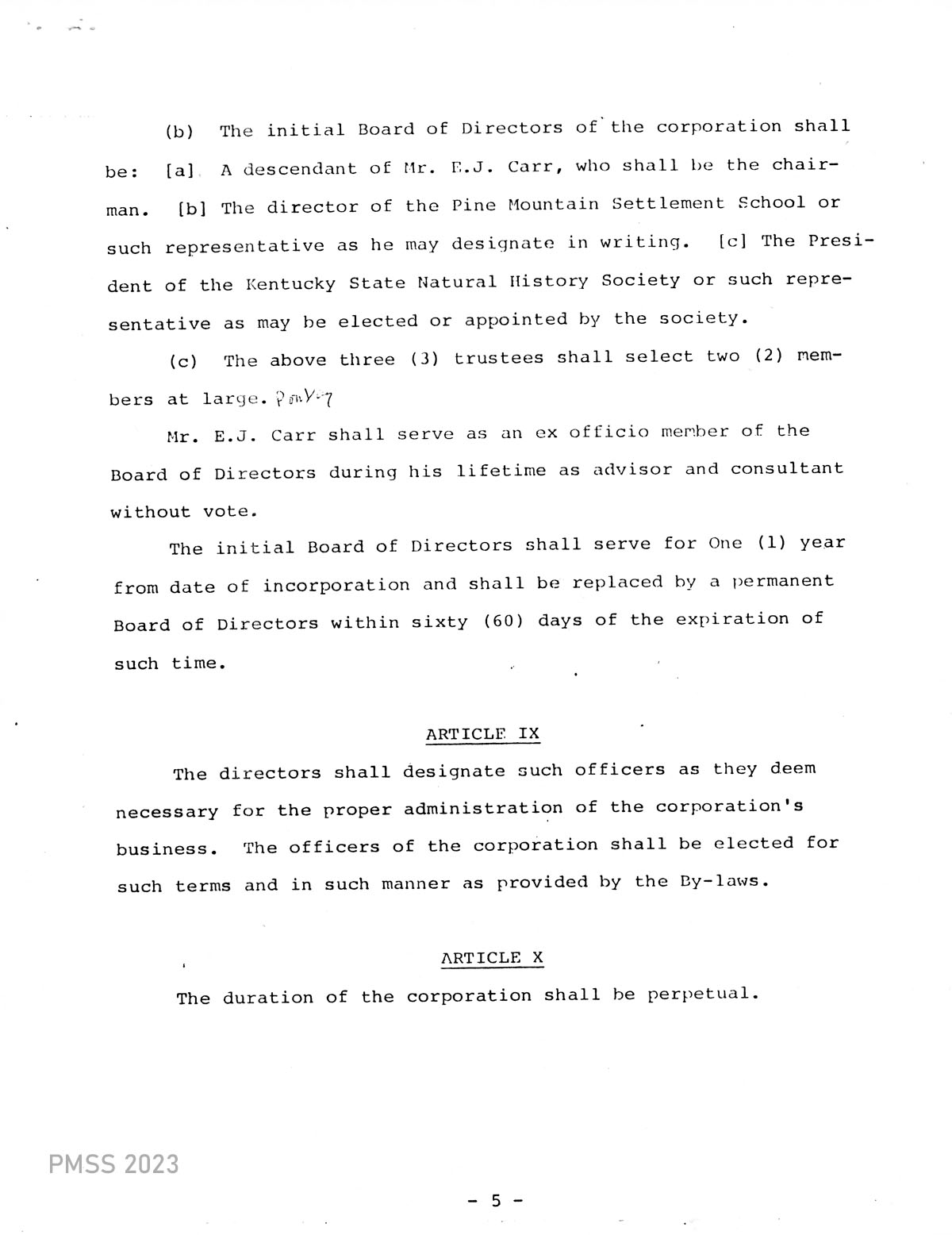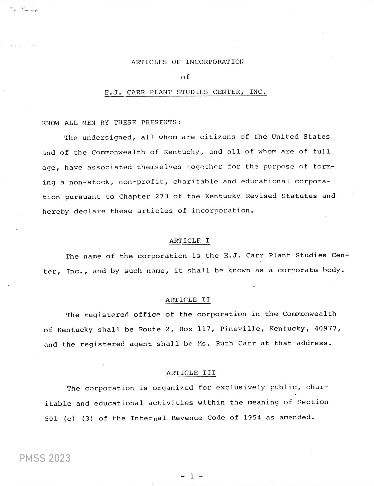 E. J. CARR PLANT CENTER Establishment and Articles of Incorporation