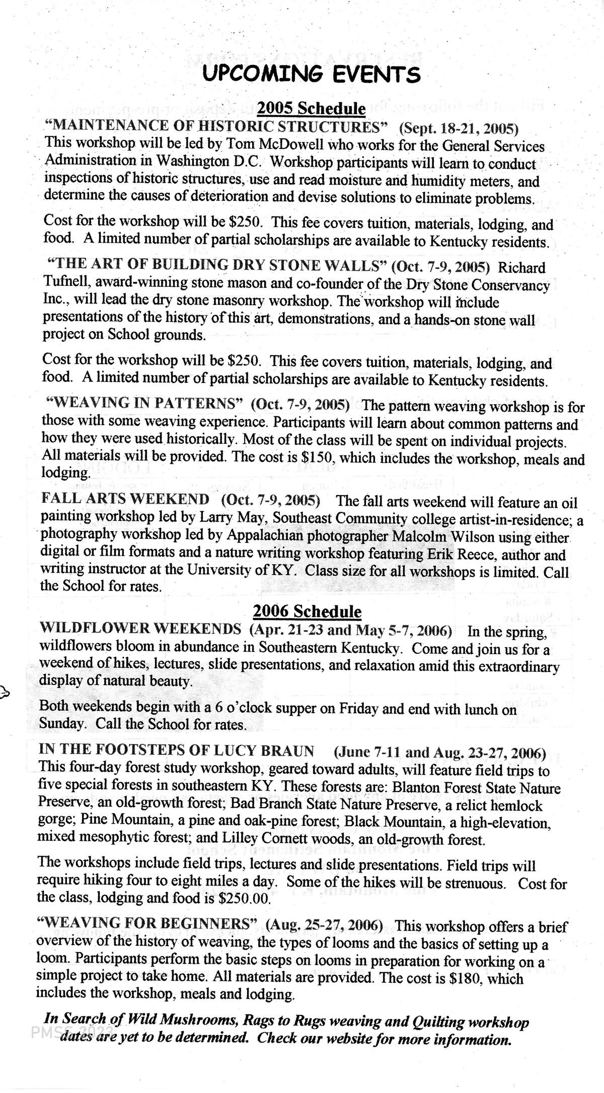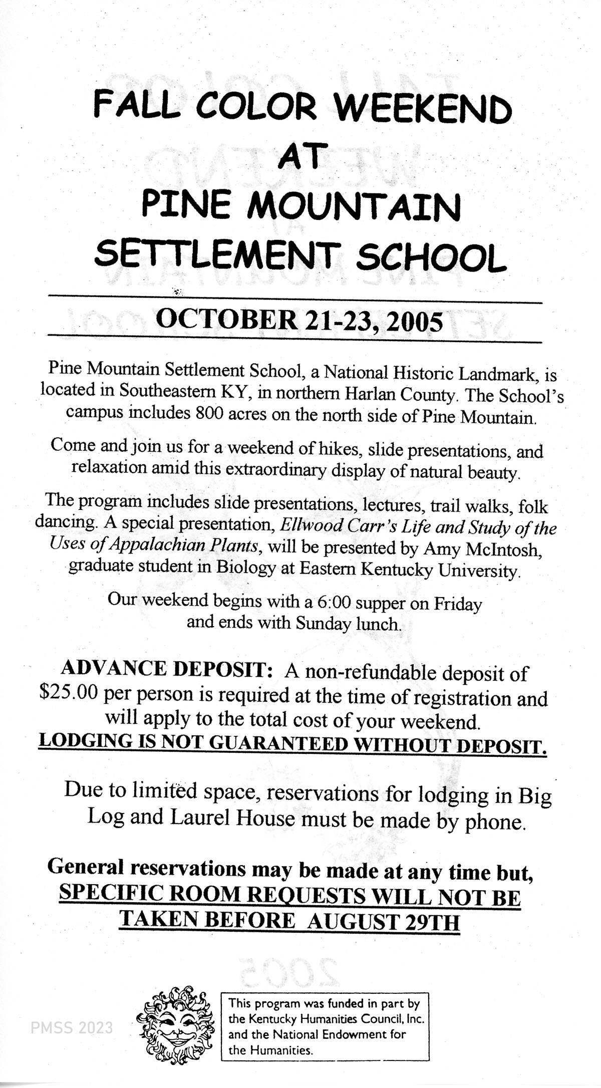 The following bulletins prepared for the 2005 FALL COLOR WEEKEND describe a series of other events that accompanied the favorite weekend.