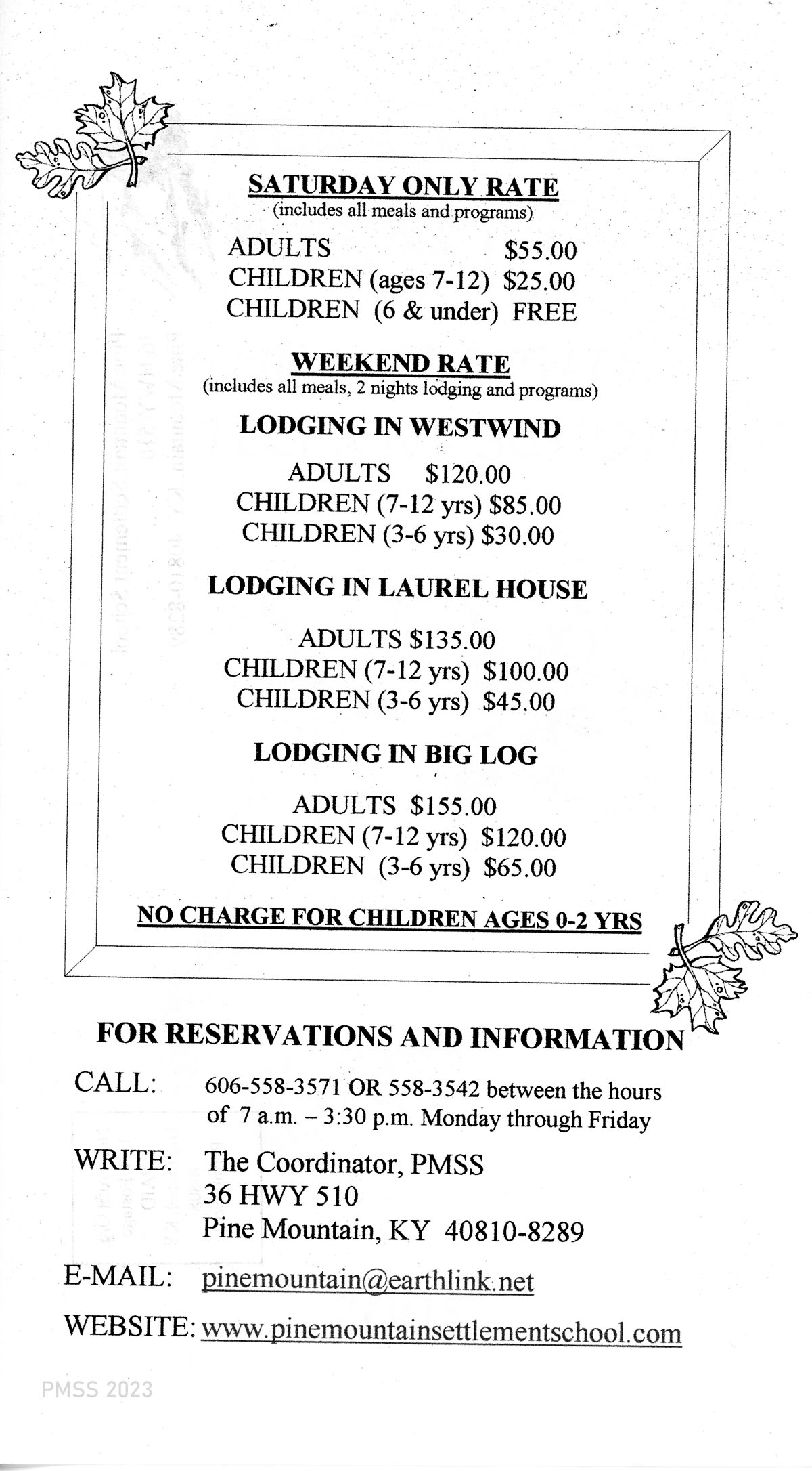 FALL COLOR WEEKEND evolved alongside the development of the Environmental Education Program and became a favorite of visitors to the campus. The variety of trees and the range of colors along Pine Mountain are certainly remarkable.