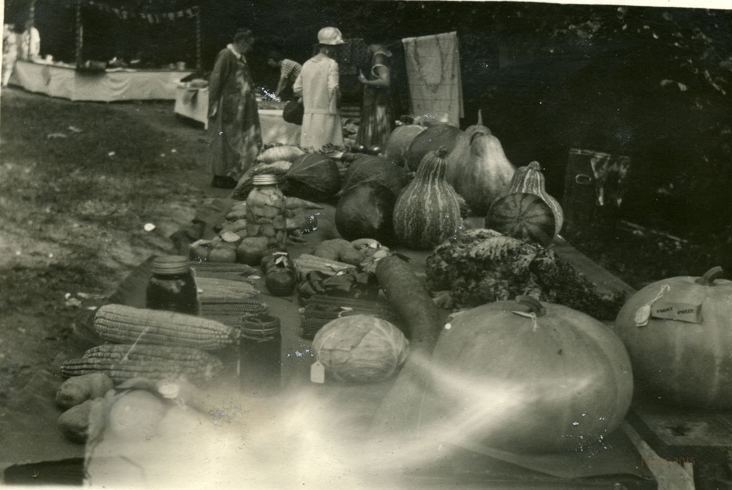 - Large squash and other produce on exhibit on Fair Day at PMSS. [norton_039.jpg]