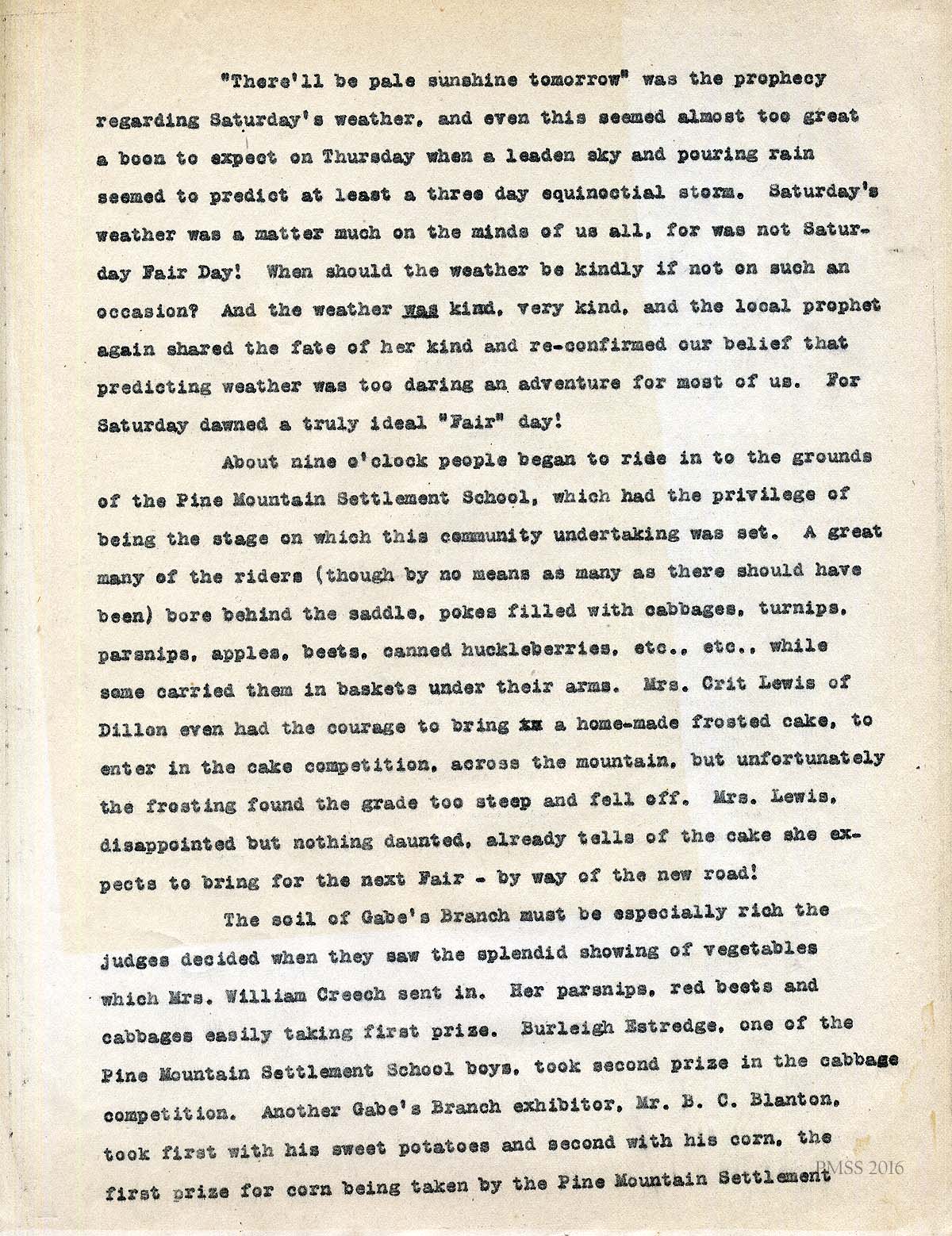 3.  [033a through 033d] October 2, 1917. Text of the write-up of the first Fair at Pine Mountain Settlement School sent to the Harlan Enterprise. PAGE 1.
