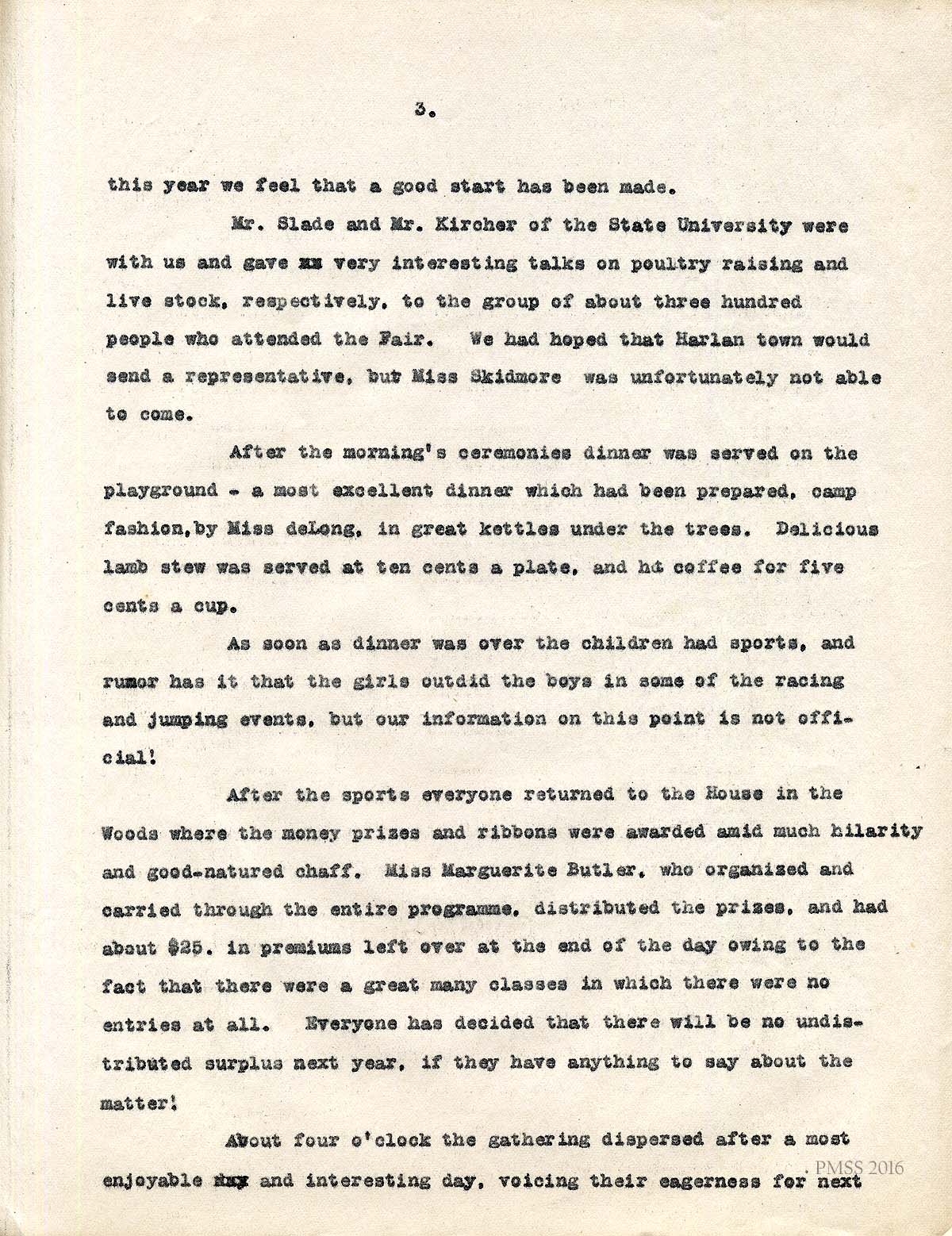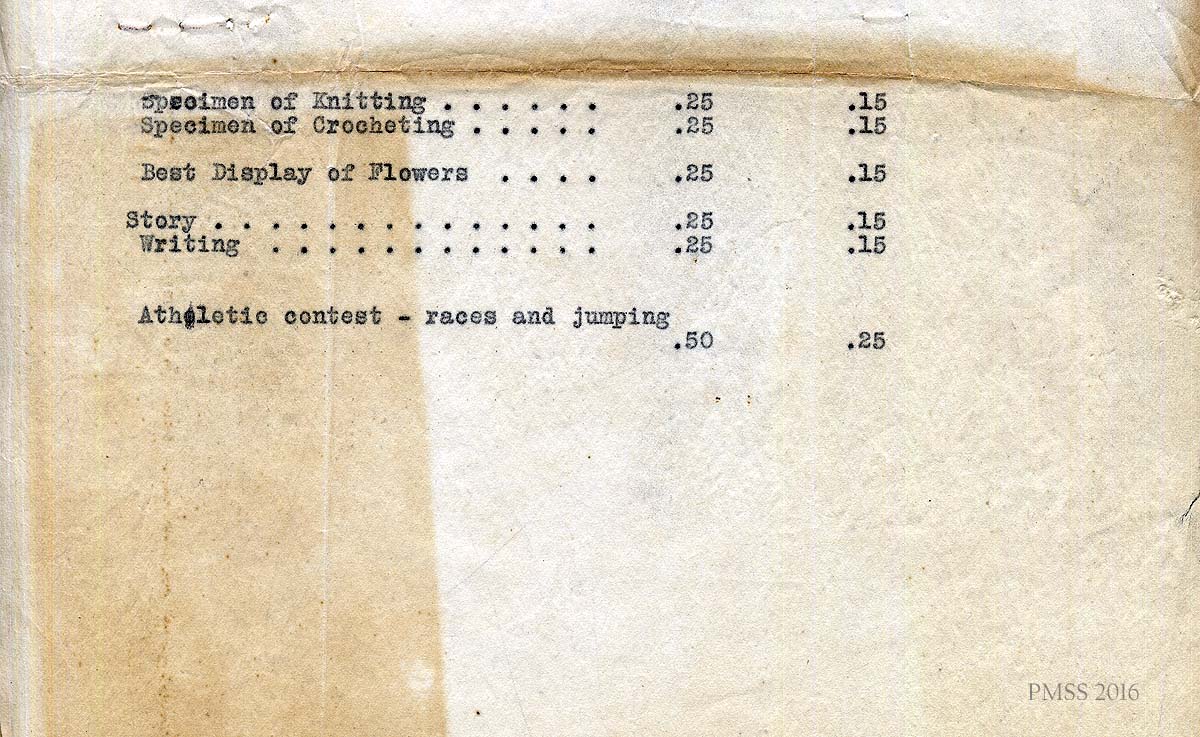 Evelyn K. Wells, a PMSS worker (secretary 1916-1931), provided these observations of the 1917 Community Fair Day: