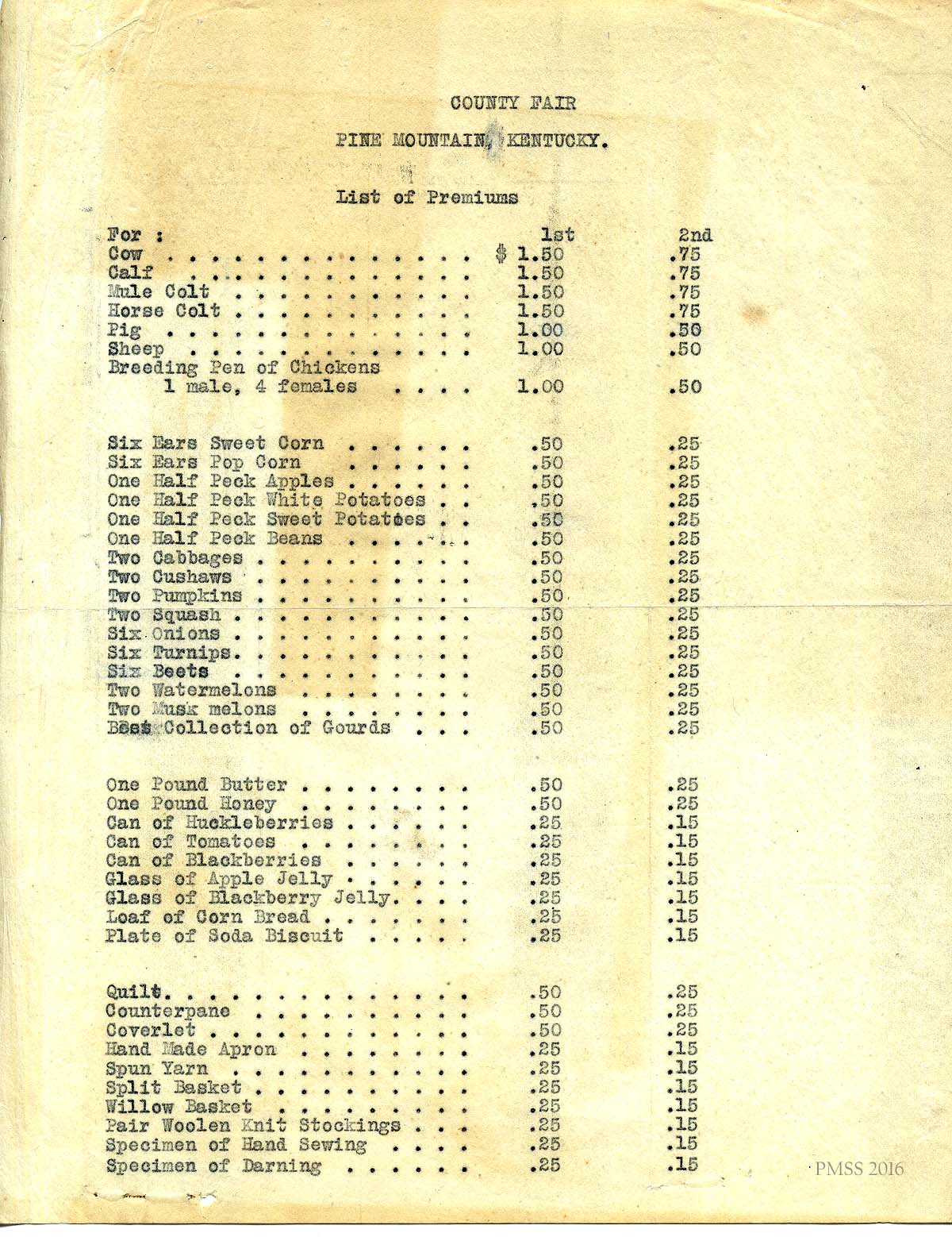1.  [034a & 034b] List of Premiums for the County Fair, Pine Mountain Settlement School.