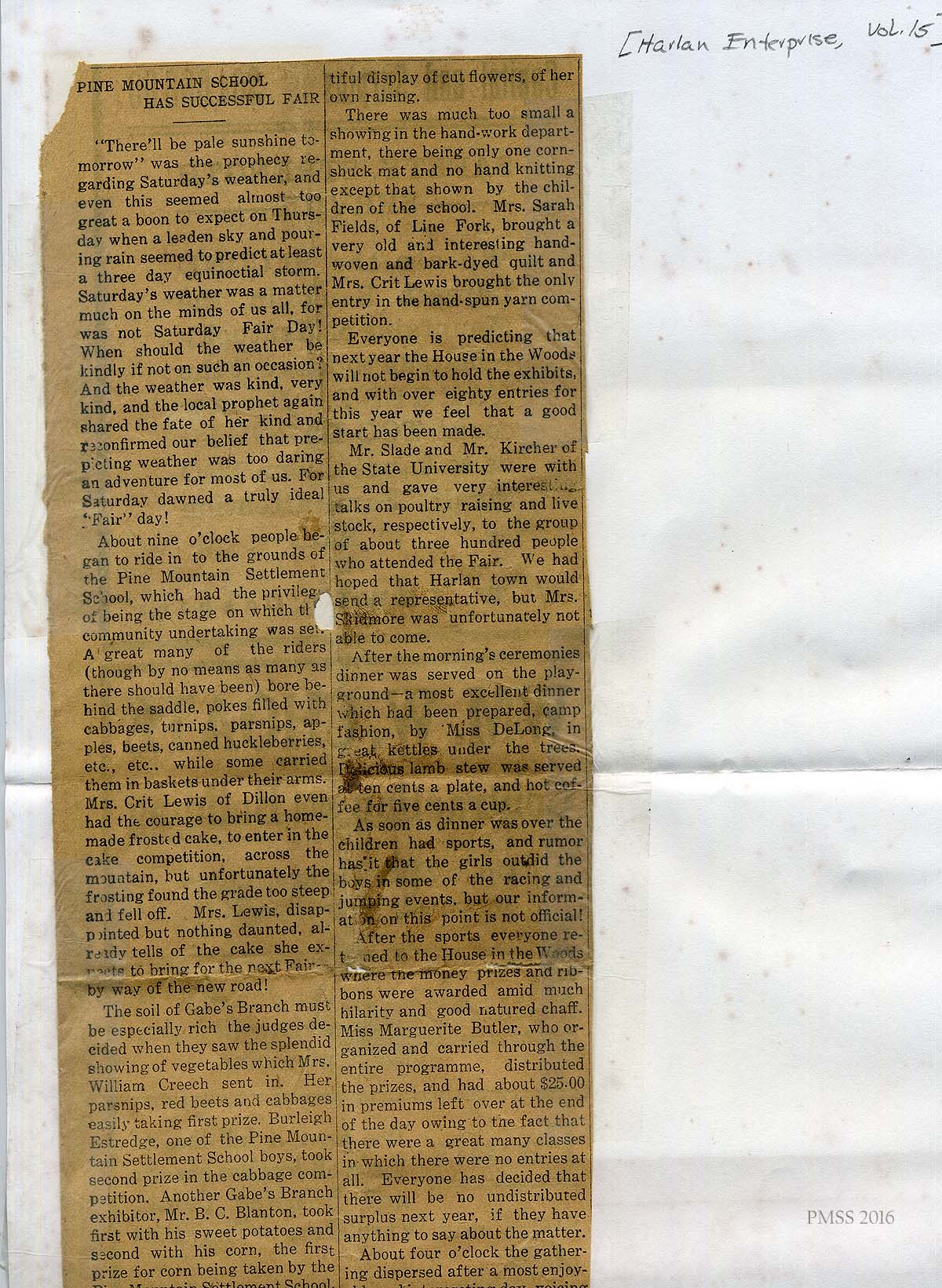 - October 2, 1917. Text of the write-up of the first Fair at Pine Mountain Settlement School sent to the Harlan Enterprise. p. 2. [1917_fair_day_033b]