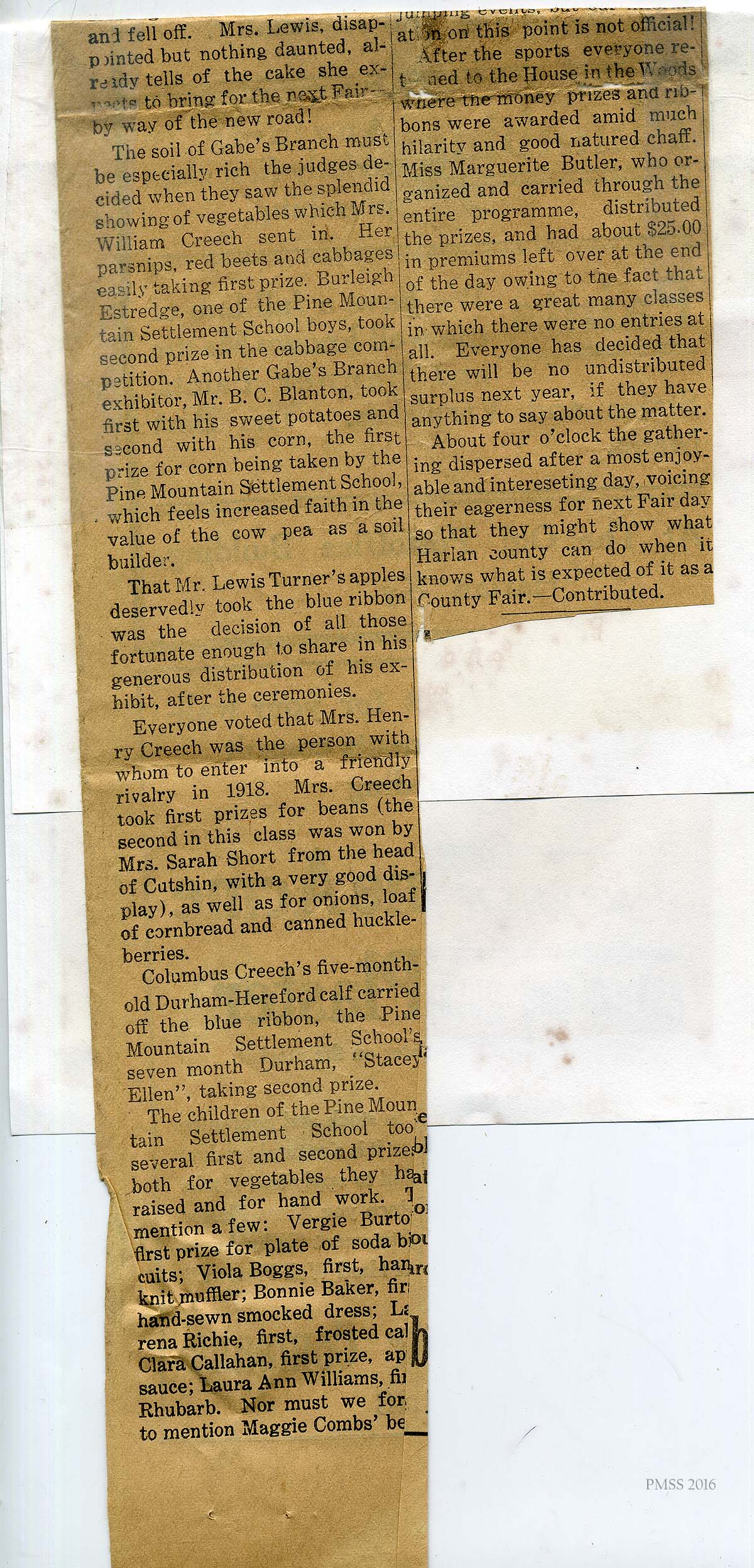 - October 2, 1917. Text of the write-up of the first Fair at Pine Mountain Settlement School sent to the Harlan Enterprise. p. 3. [1917_fair_day_033c]
