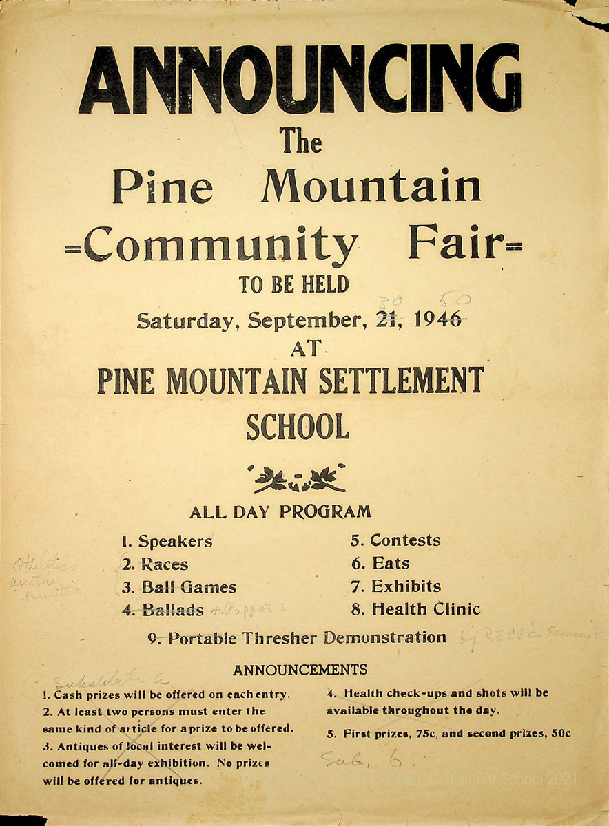 The Community Fair Day is one of many annual events that has a long history at Pine Mountain Settlement School. It started in 1917 as an extension of the Harlan County Fair and the School’s “Farmer’s Day.”