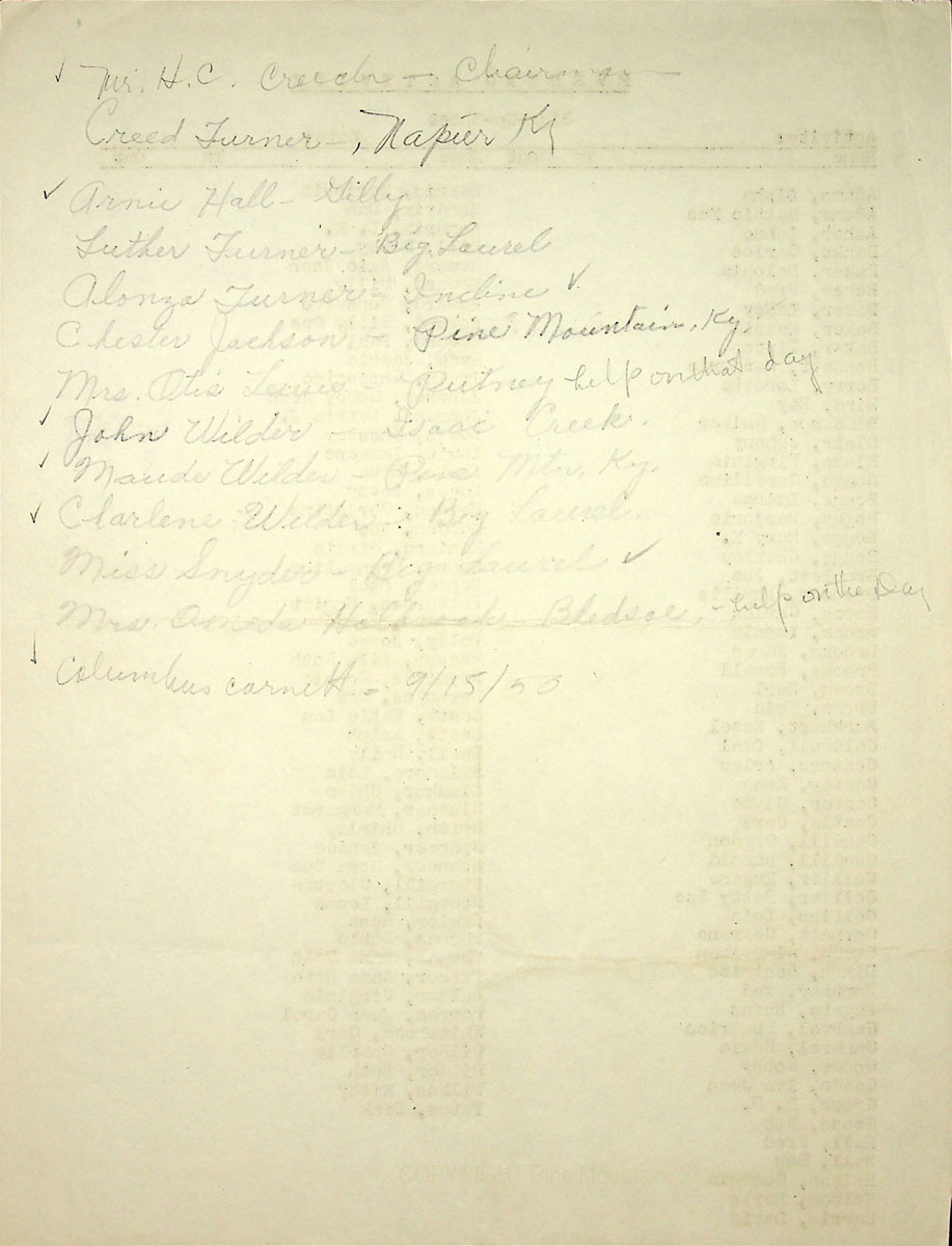 02a-x N.D. Handwritten list of names, apparently those who received the August 29, 1950, invitation to join the Fair Day Planning Committee.