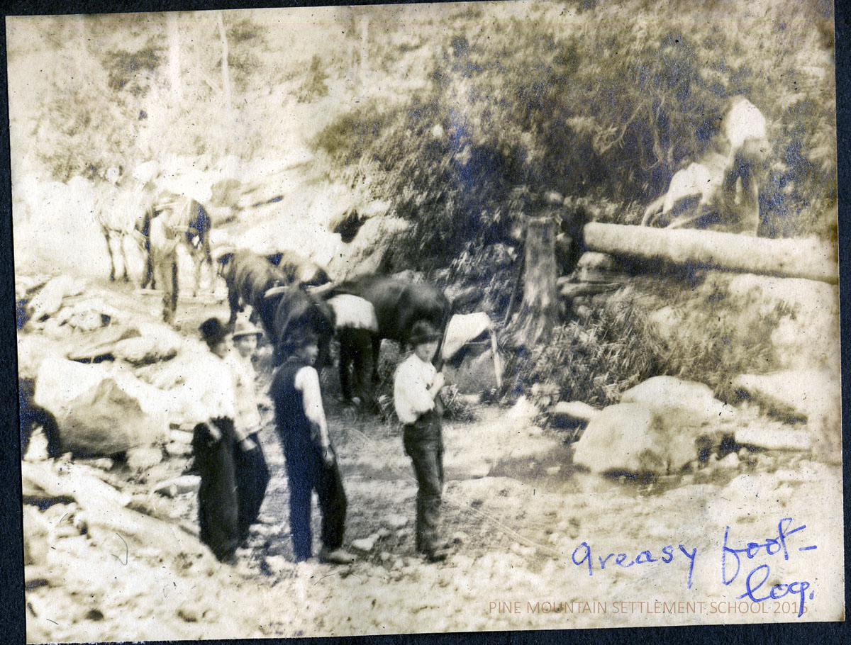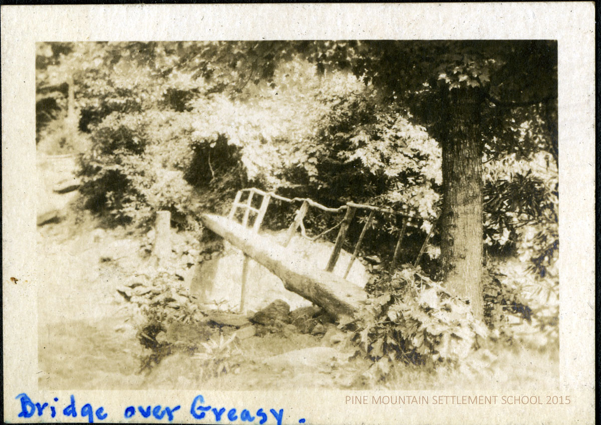 - Foot log over Greasy [Creek]. . Angela Melville Album II, Part I. “Bridge over Greasy.” [melv_II_album_009.jpg]