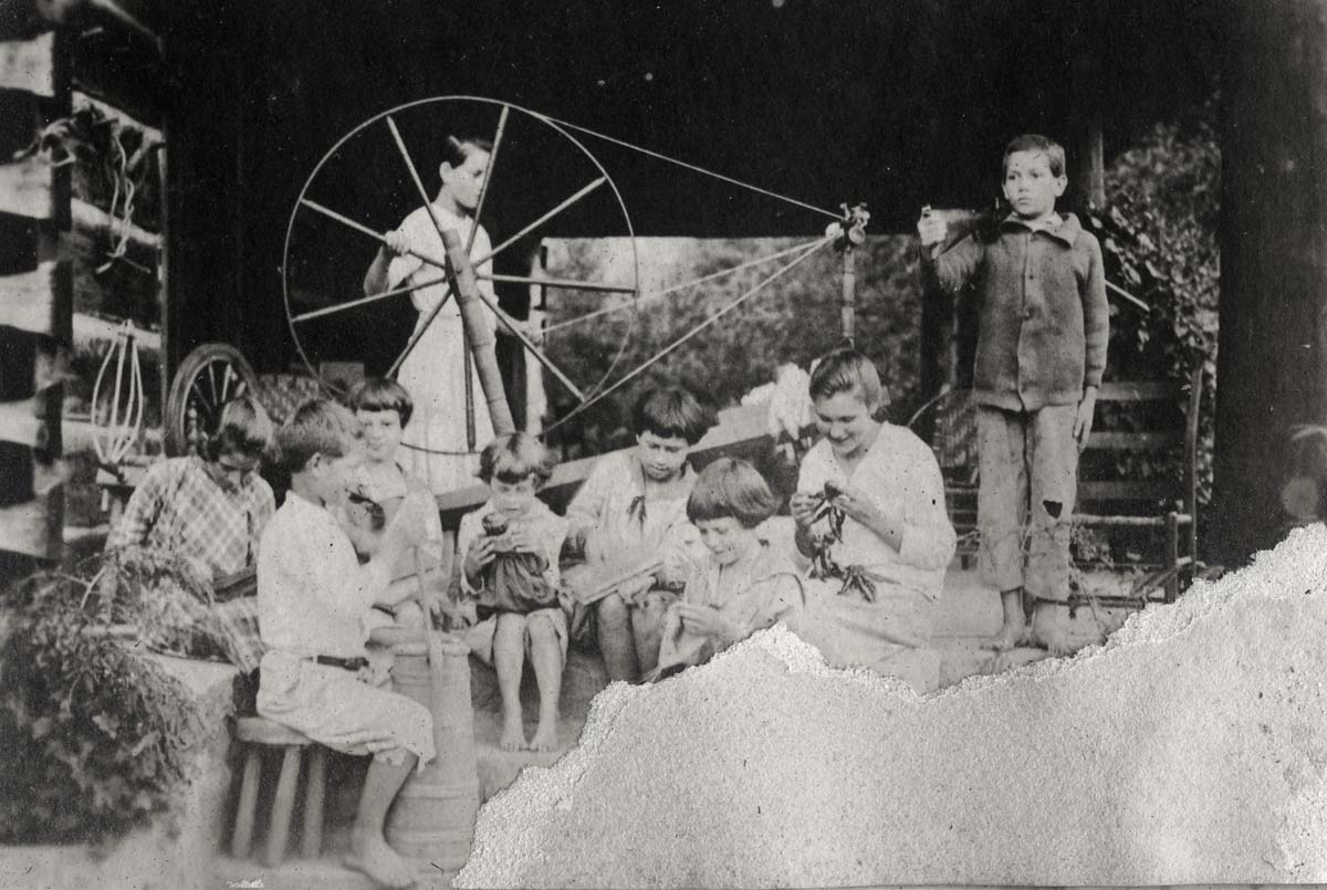 TAGS: Angela Melville Album II – Part I, Angela Melville ; logging ; logging trains ; foot-logs ; log loaders ; Greasy Creek ; bridges ; mules ; Burkham School House I ; smokehouses ; Uncle William Creech ; children ; spinning wheels ; weaving ; gardening ; litters ; medical ; medical services ; Laurel House I ; Ethel de Long ; Big Log ; fireplaces ; pioneers ; Old Log ; Pole House ; Tool House I ; Aunt Sally Creech ; Dr. Abby N. Little ; Cam ; schoolhouses ; Daniel Lord ; Mrs. Morse ; Miss Murdock ; Open House ; Luigi Zande ; William Gross ; Katherine Pettit ; Callahan Family ; Seven Callahans ; Green Bailey Gross ; Nobie ; Baths ; Mrs. Crit Lewis ; Little Laurel ; Little Laurel Creeches ; Mrs. Day and Angela baby ; Uncle John Lewis ; “Fiddler” John Lewis ; Aunt Louize ; Aunt Louise ; Farm House ; Playground ; House in the Woods ; Mrs William Causey ; William Causey ;