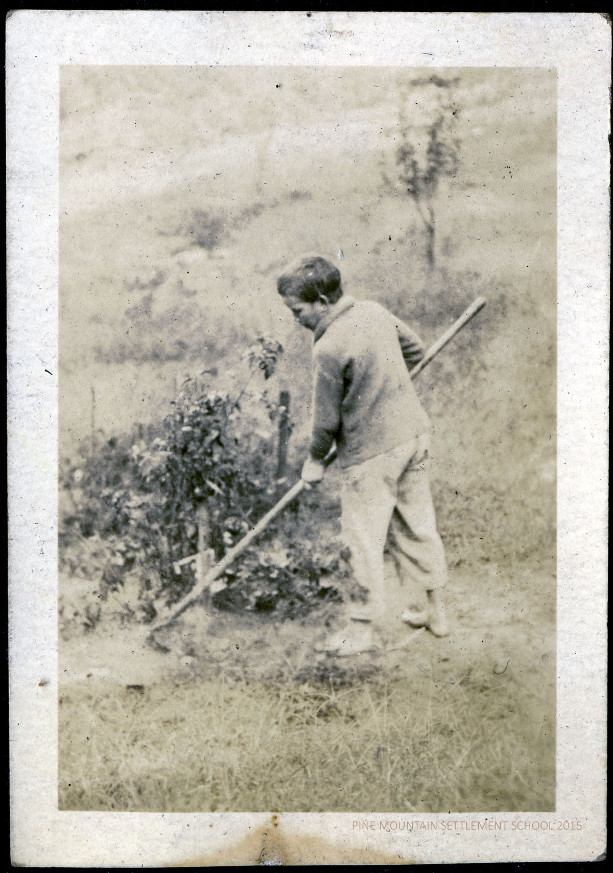 The Angela Melville material included in this album was donated to Pine Mountain Settlement School in June 2011 by Angela Melville’s niece, Ann Melville Wilson. The donation included the photograph album as well as newspaper clippings and a small booklet written by Angela Melville in 1957 for her nieces and nephews, called “Woodboo,1957” that describes her former home and life.