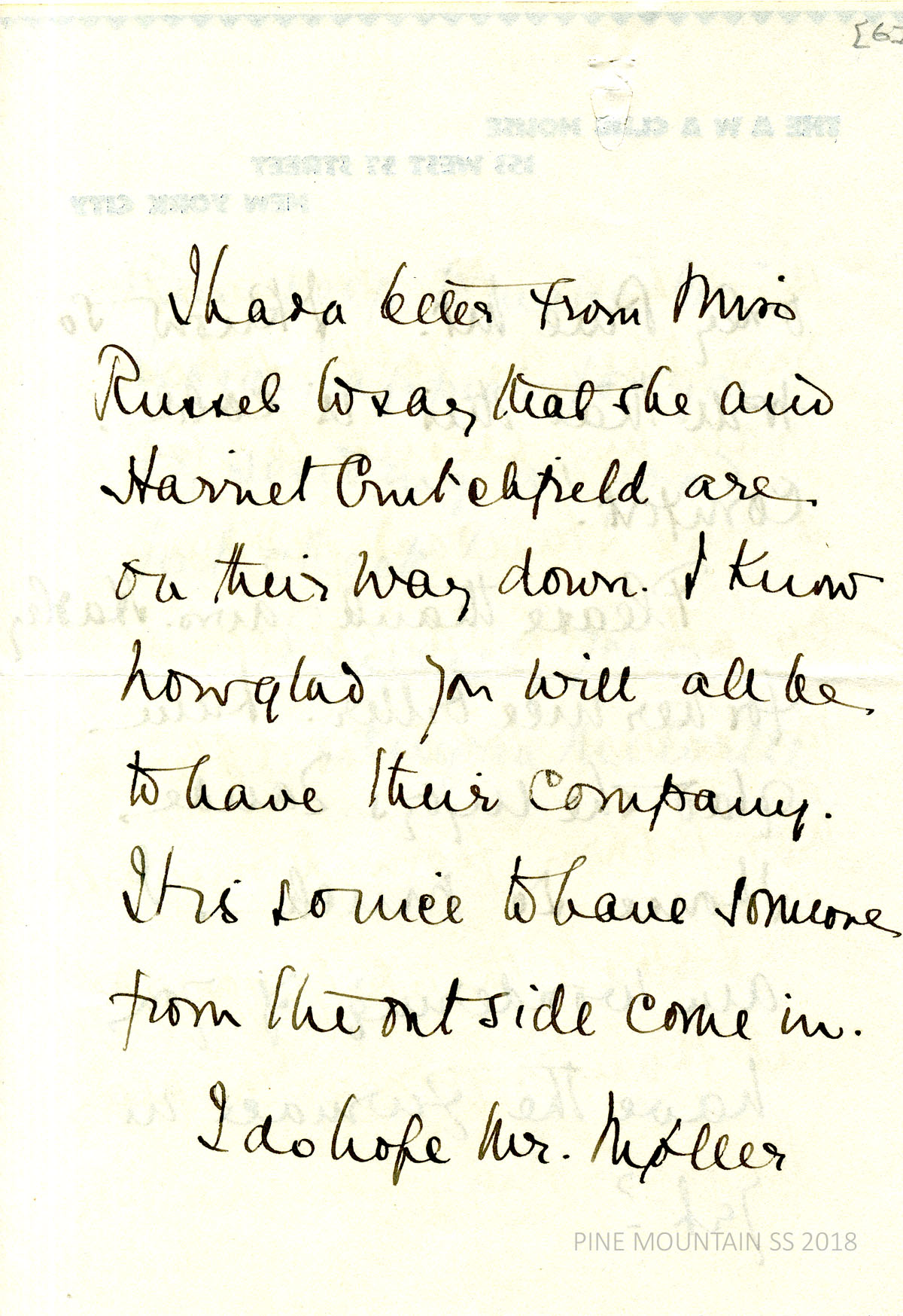 [melville_corr_060d.jpg] (page 6) Miss Russel and Harriet Crutchfield plan a visit to PMSS; hopes Mr. Moller…