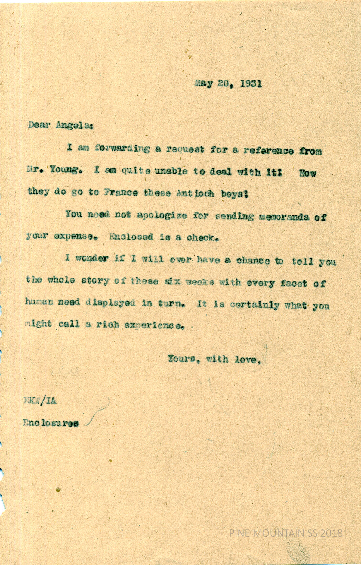 [melville_corr_063.jpg] Wells to Melville, May 20, 1931. Enclosing a reference from Mr. Young and a check for Melville’s expenses. The last 6 weeks have been “a rich experience.”