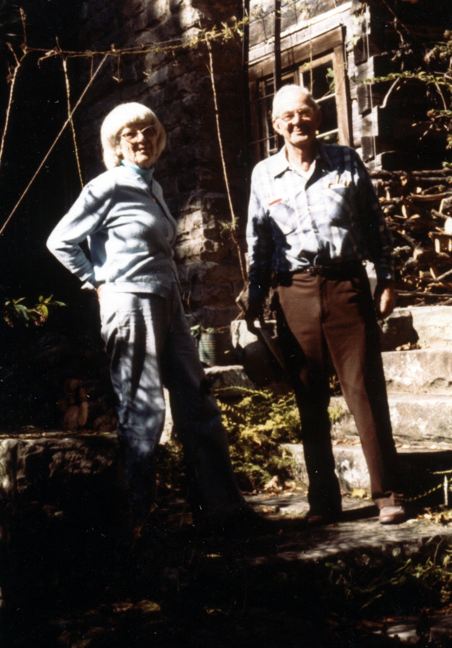 - Mary and Burton Rogers on Big Log steps. [X_100_workers_2627_mod.jpg]