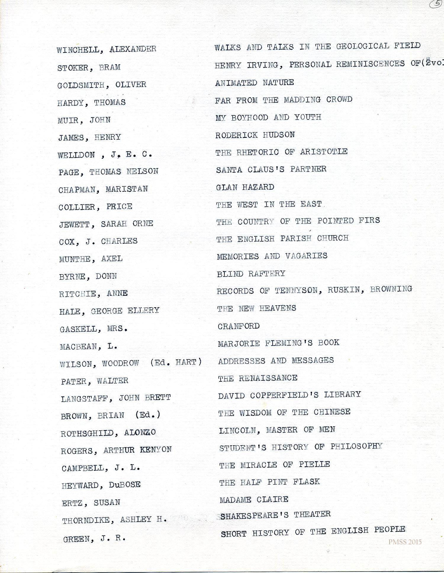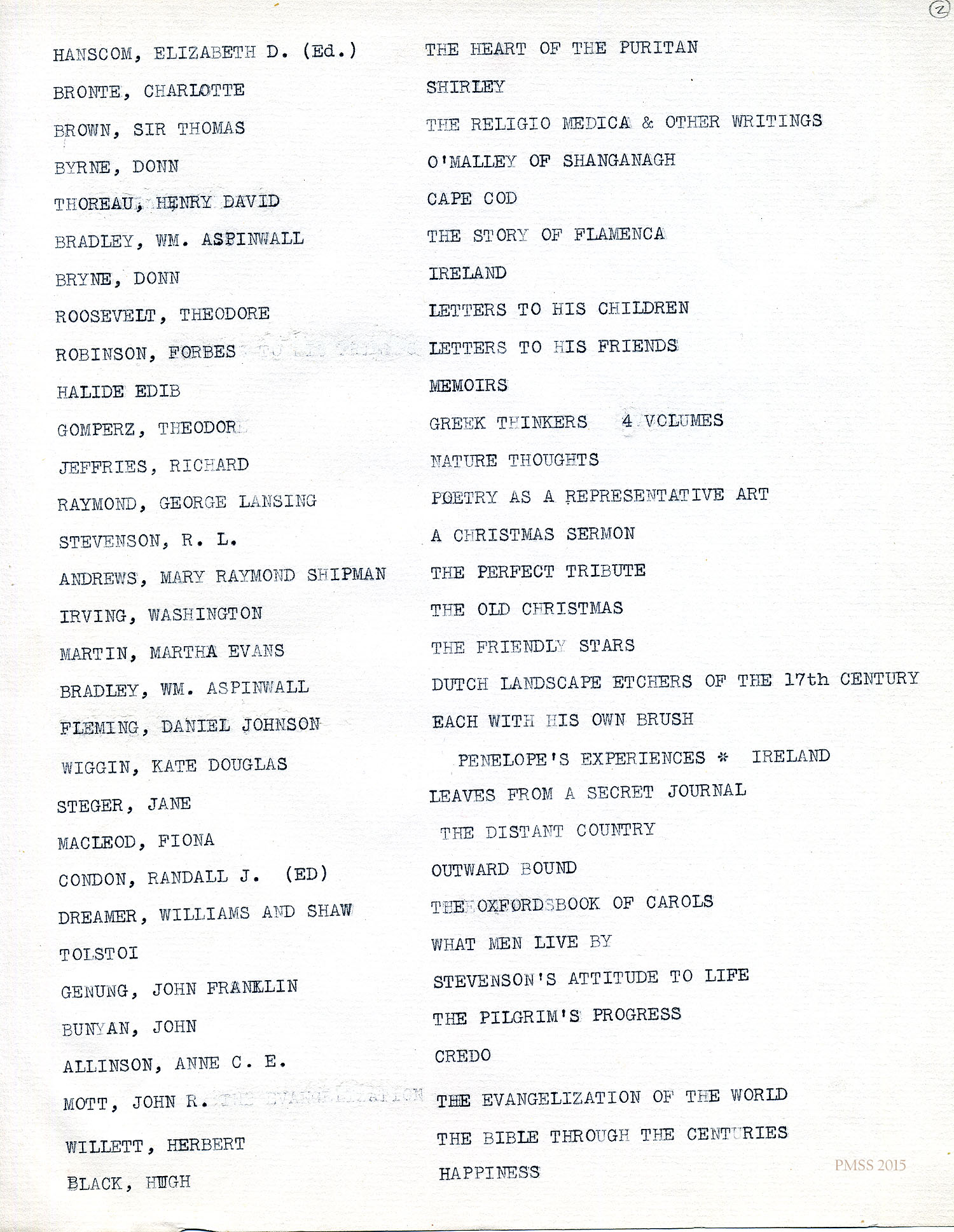 INVENTORY LIST of the Helen de Long Book Donation 2015