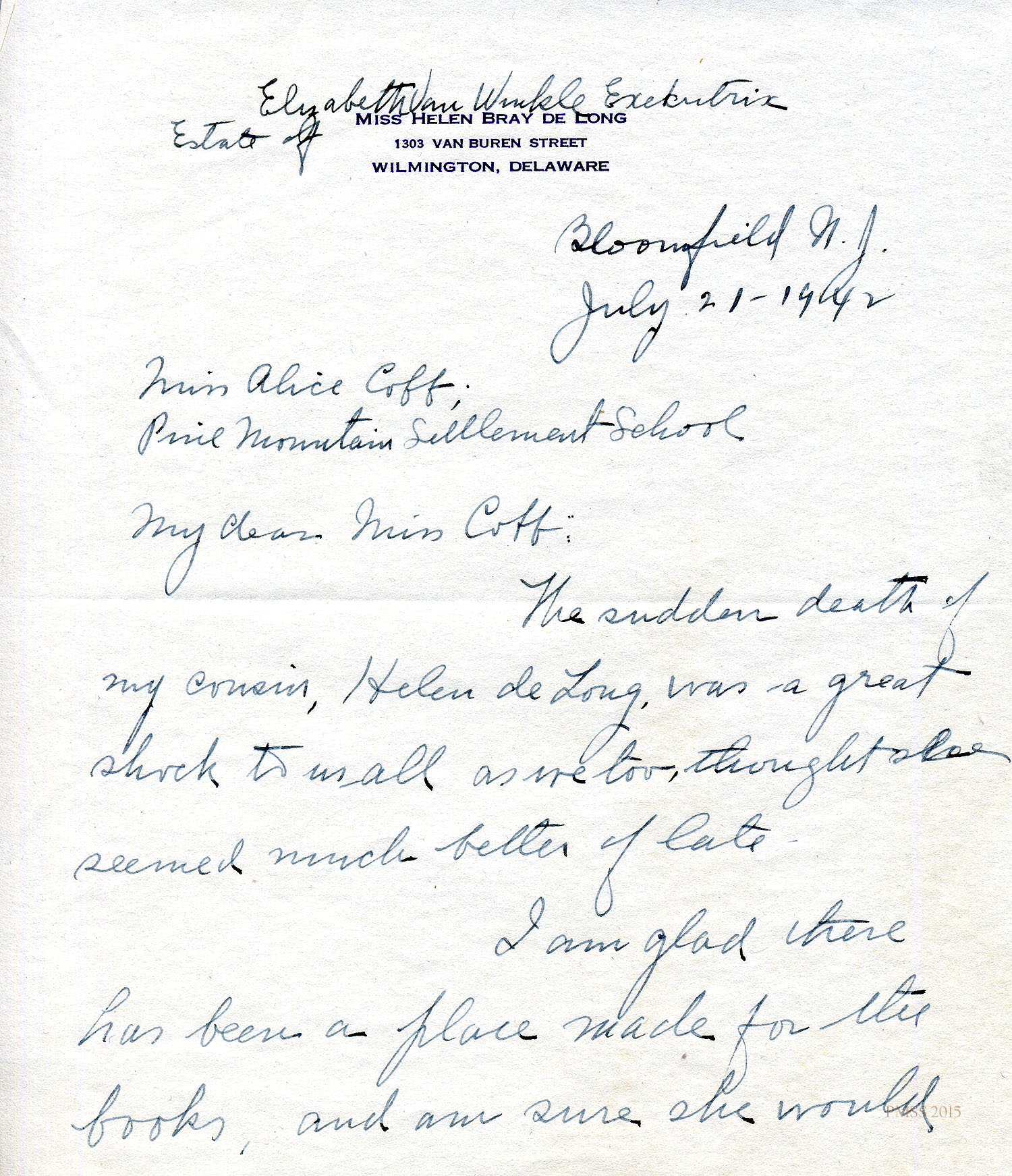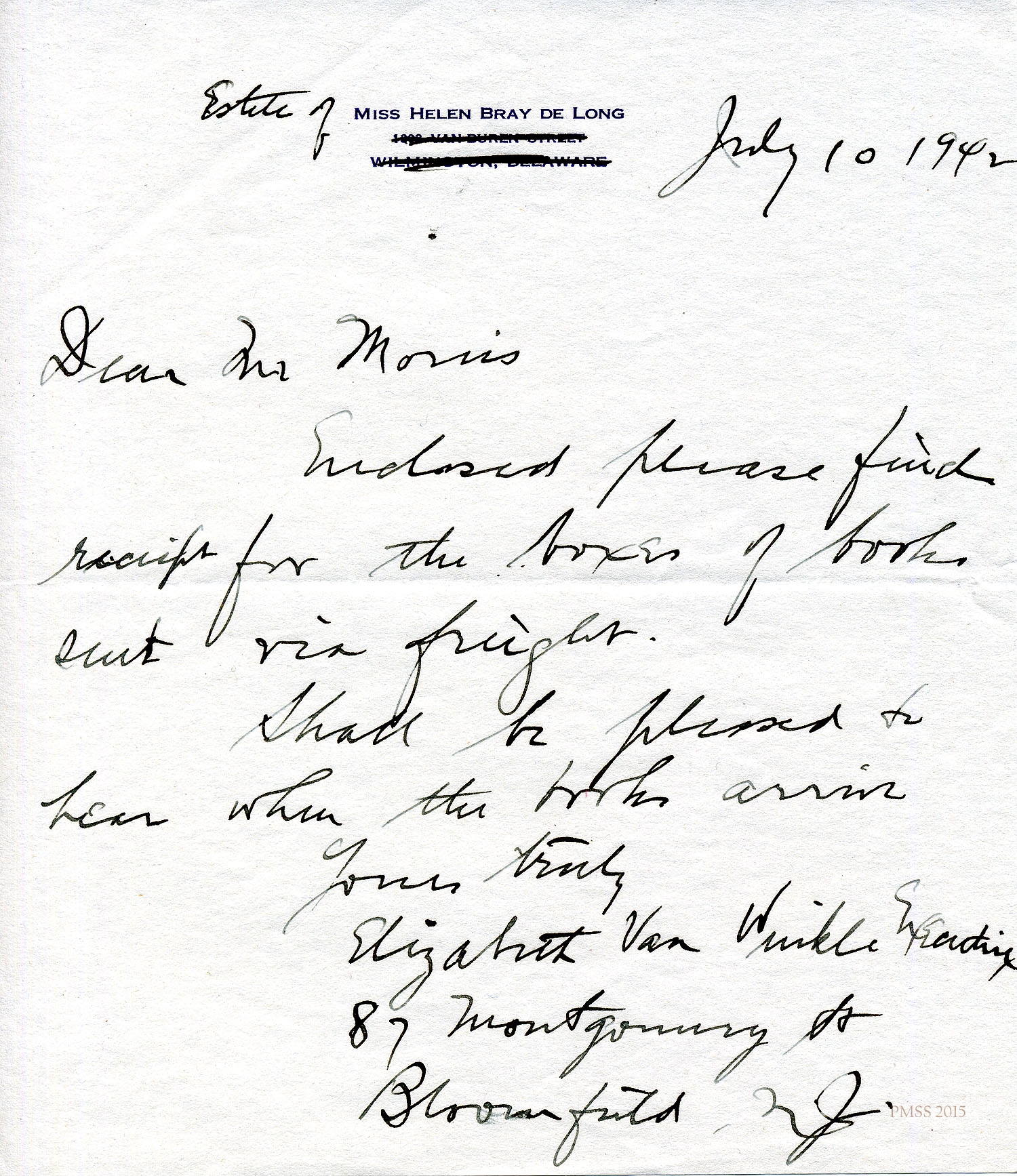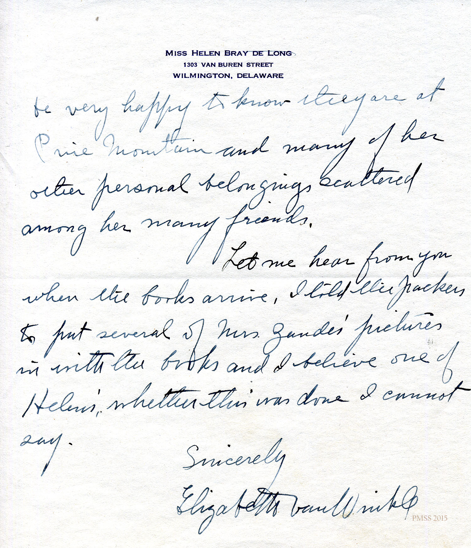 TAGS: Helen de Long and de Long Family Book Donation, Helen de Long, Arabella de Long, Ethel de Long Zande, Mary R. Kilborne, Alice Cobb, Glynn Morris, Elizabeth Van Winkle, Executrix, books, libraries, donations