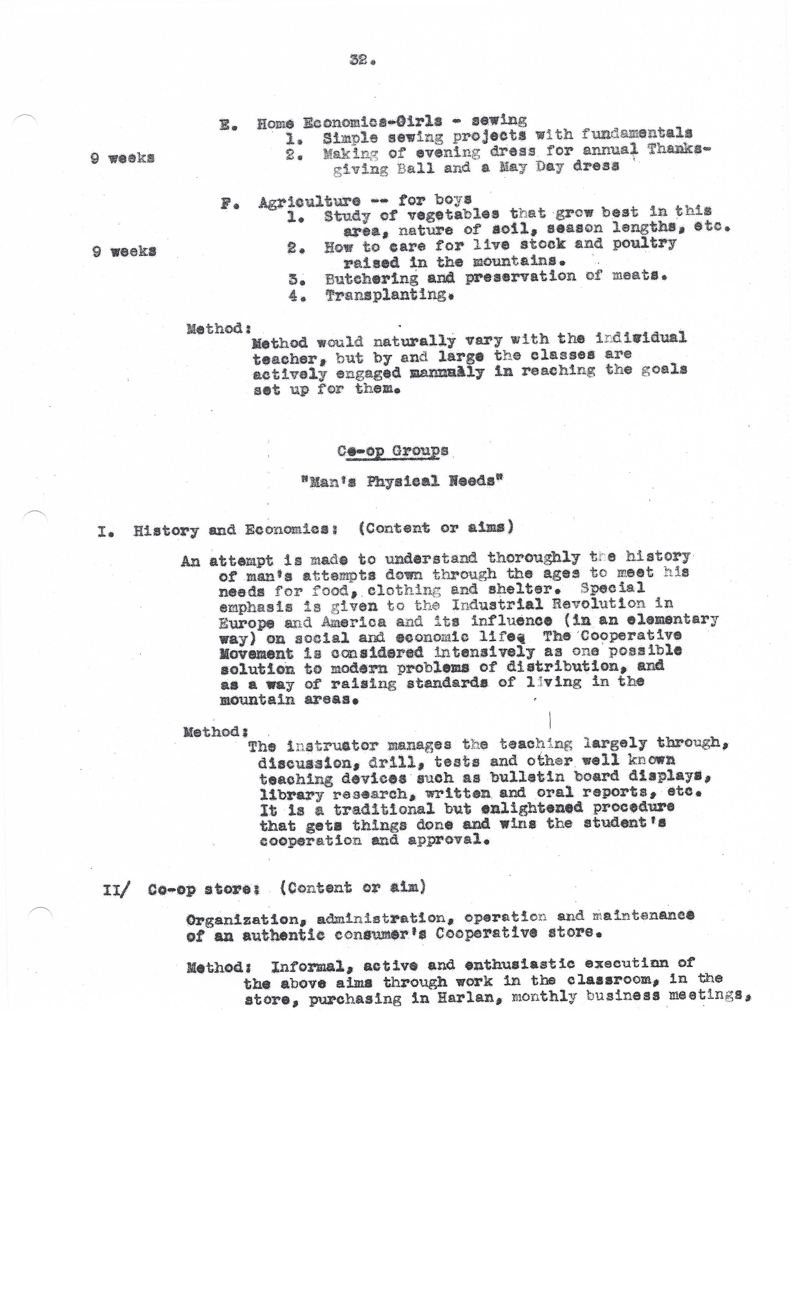 An attempt is made to understand thoroughly the history of man’s attempts down through the ages to meet his needs for food, clothing and shelter. Special emphasis is given to the Industrial Revolution in Europe and America and its influence (in an elementary way) on social and economic life. The Cooperative Movement is considered intensively as one possible solution to modern problems of distribution, and as a way of raising standards of living in the mountain areas.
