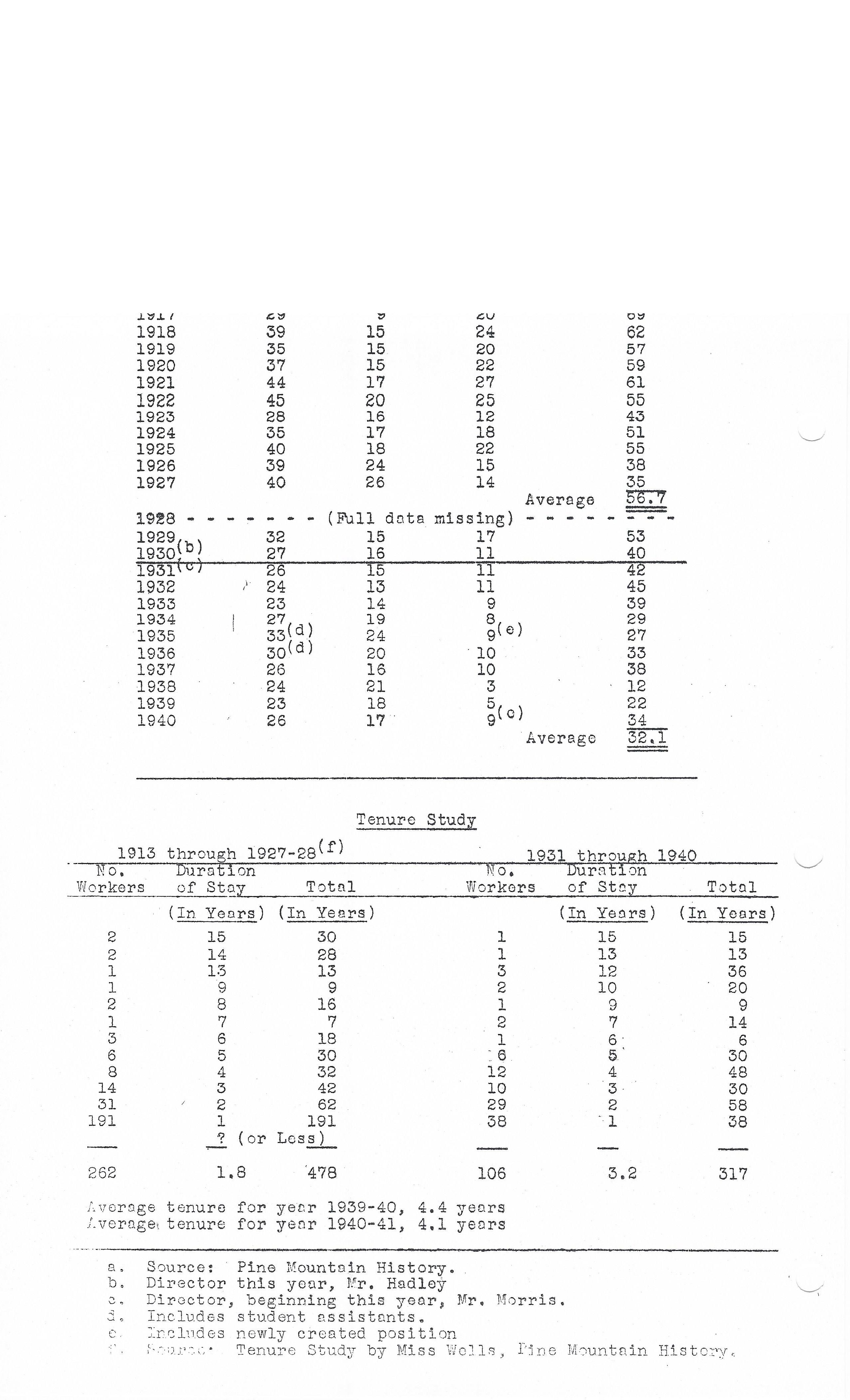 6. Source: Tenure Study by Miss Wells, Pine Mountain History.