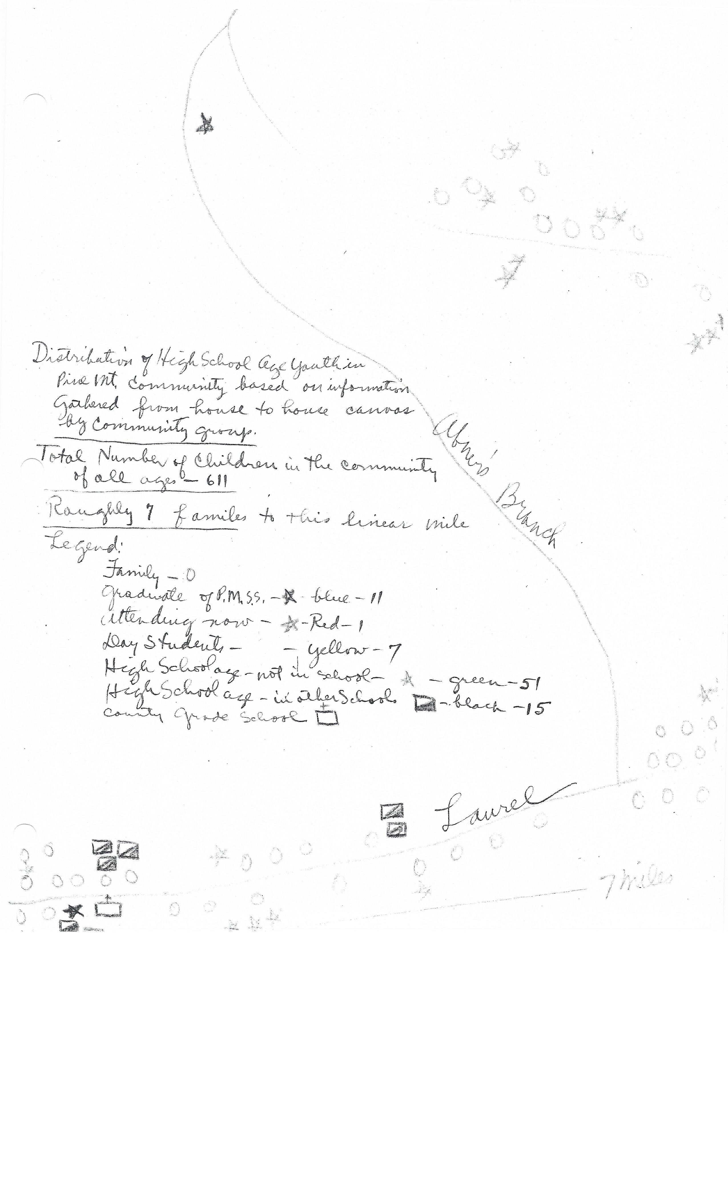 Distribution of High School Age Youth in Pine Mt. Community based on information gathered from house to house canvas by Community Group.