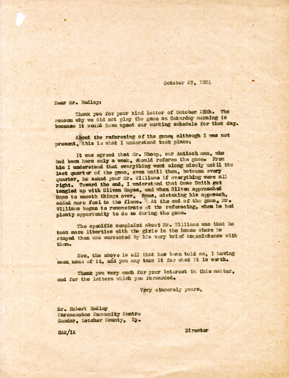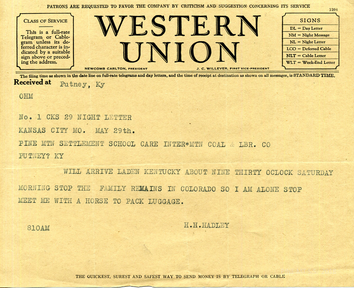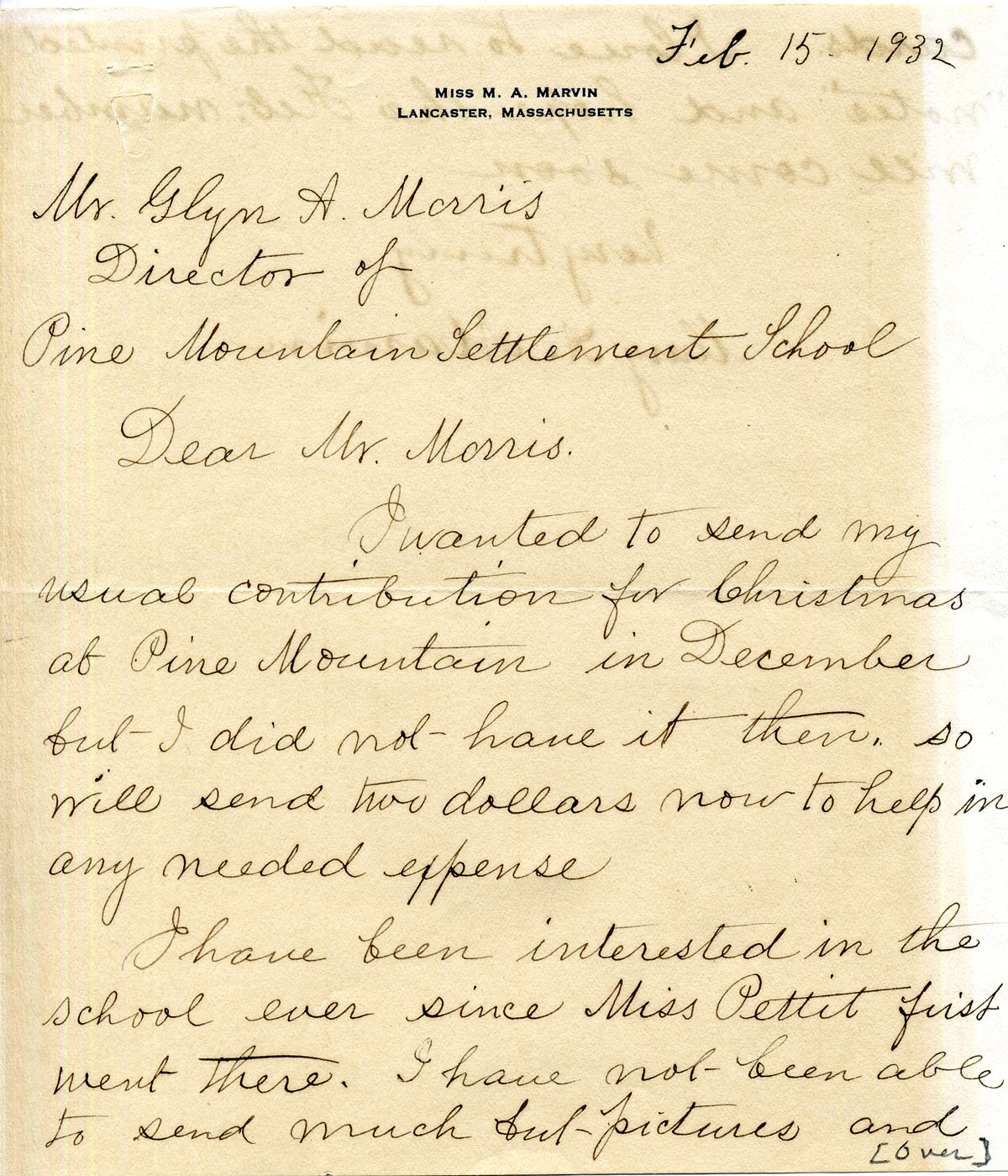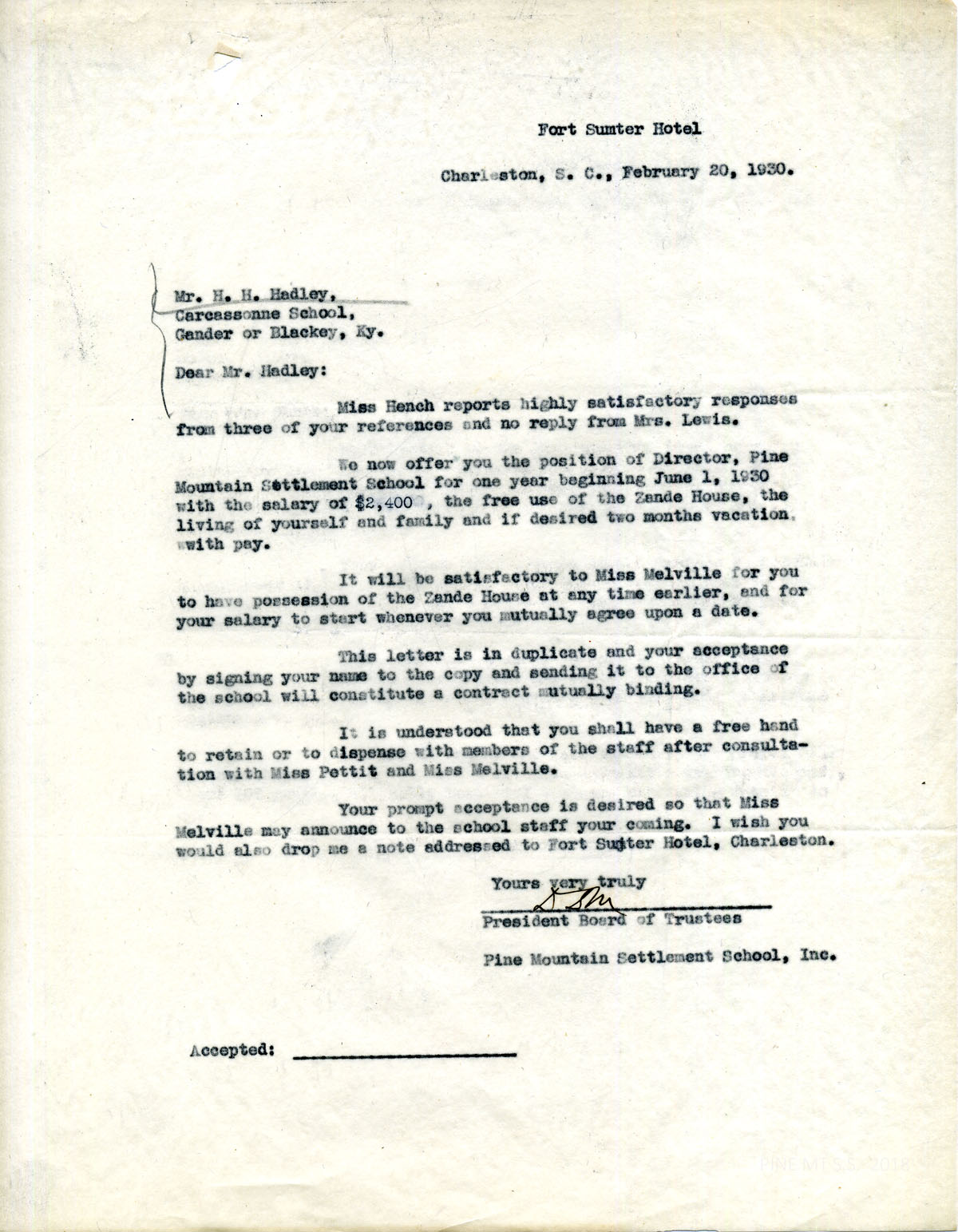 Hubert Hadley Correspondence displays images of letters, dated 1929 to 1939, to and from the Director of Pine Mountain Settlement School who served for one year, 1930-1931. Hubert Hadley’s term was just prior to that of Glyn Morris who succeeded him as PMSS Director and stayed for nearly ten years. Much of the correspondence in his file is with his successor, as he was working not far away at Carcassonne Community Center in Letcher County, Kentucky.