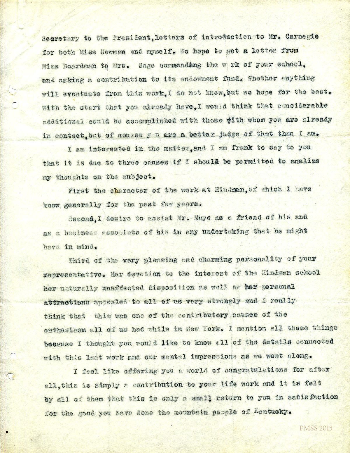 [017-018] Typewritten unsigned copy of letter [015-016] from possibly Miss Pettit, Hindman, KY, to Charles S. Robb, Elkins, W.Va.