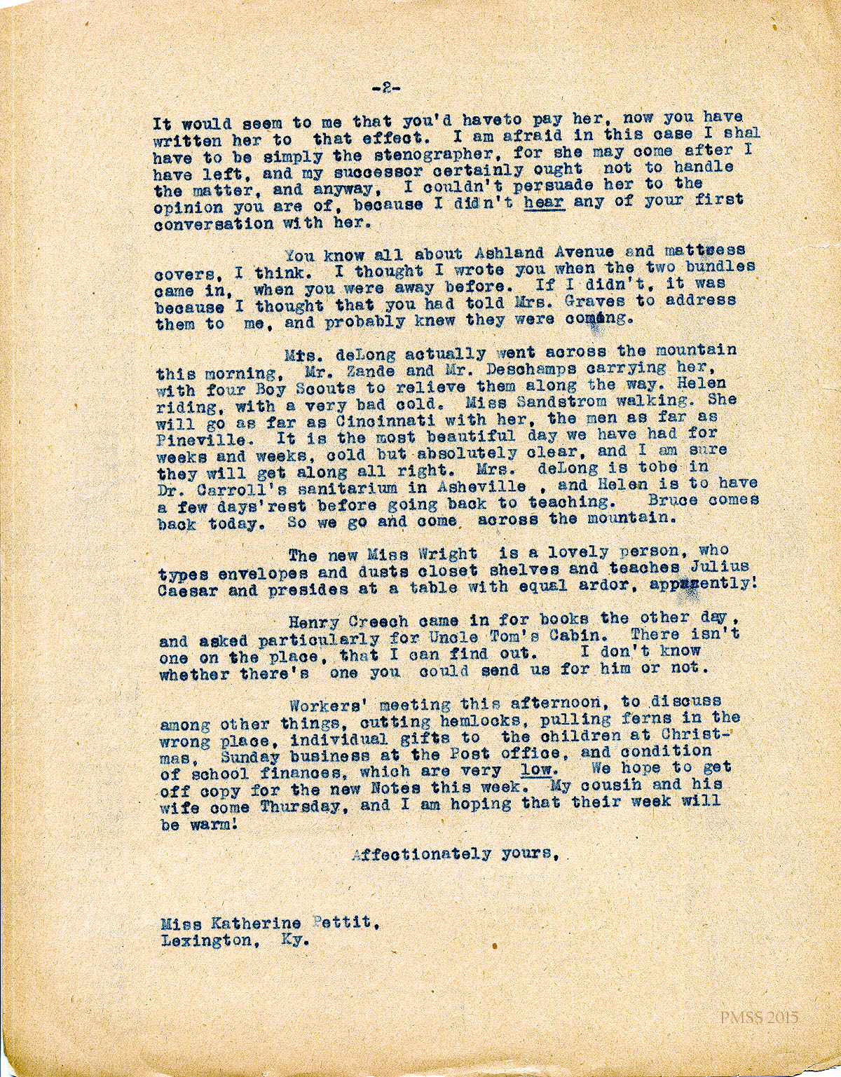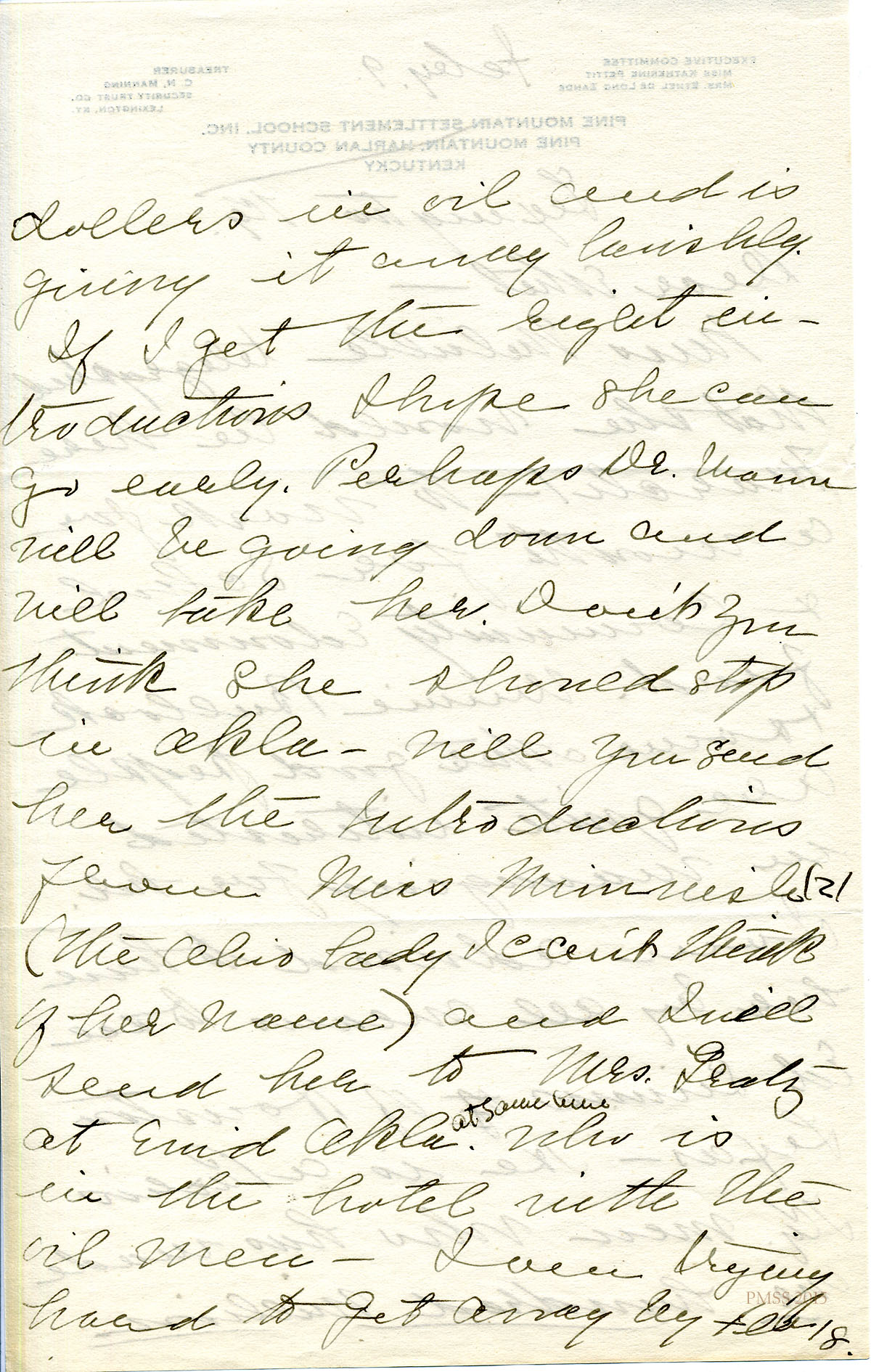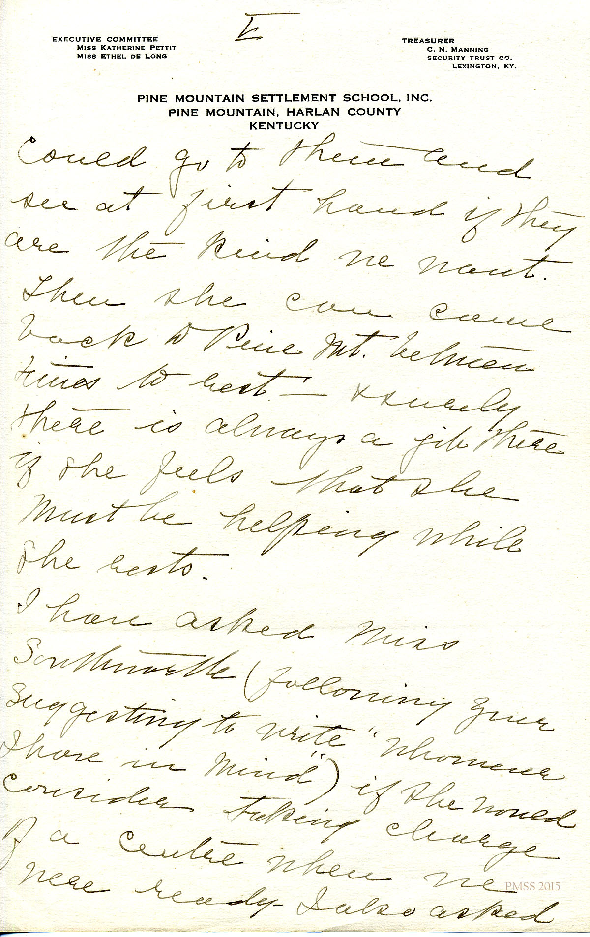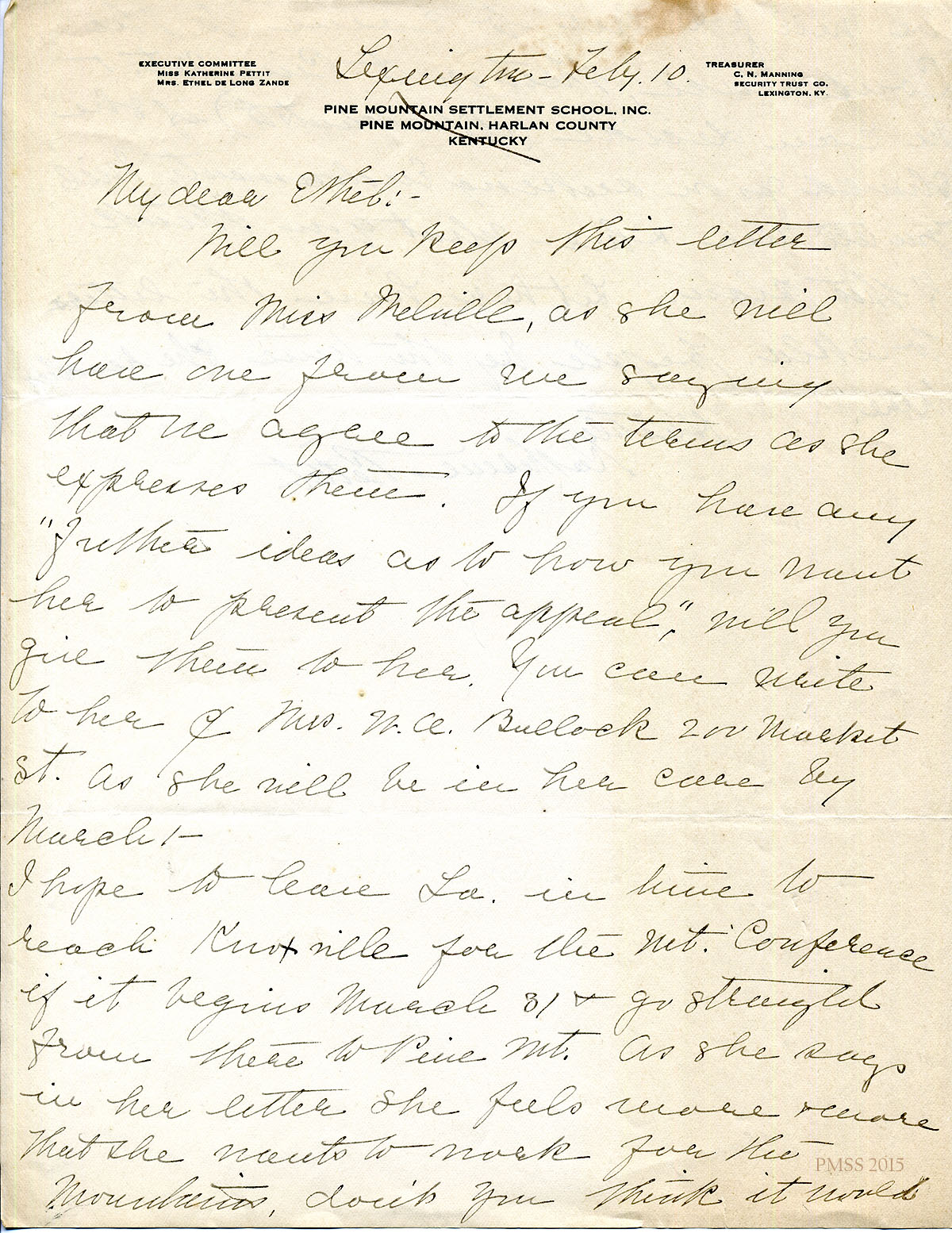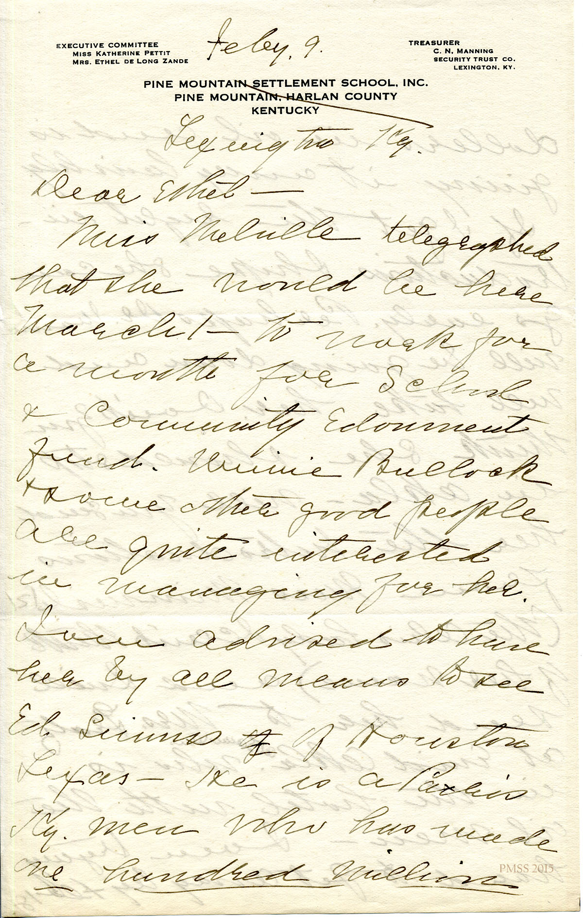 February 10 [no year] Katherine Pettit, Lexington, KY, to “Ethel”.