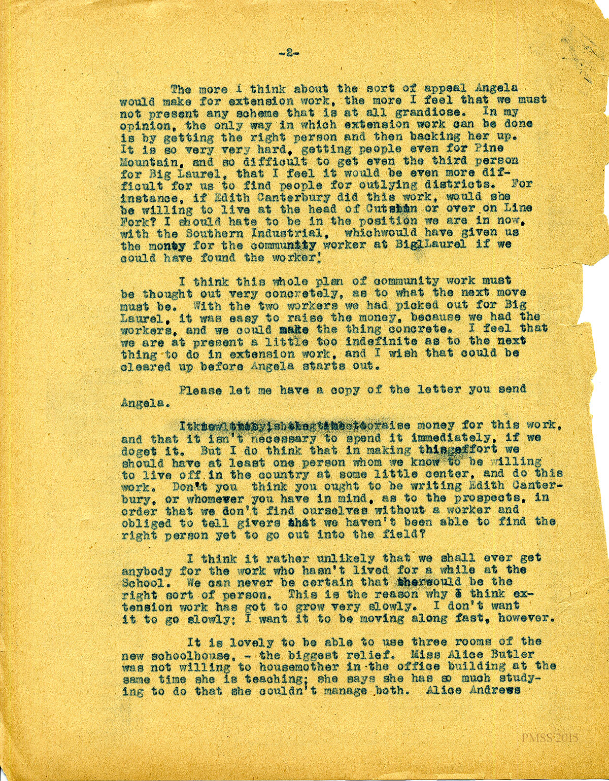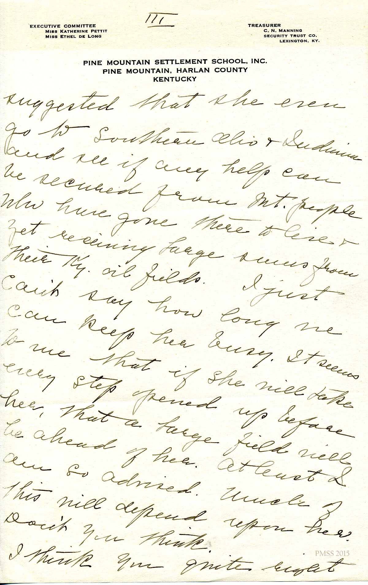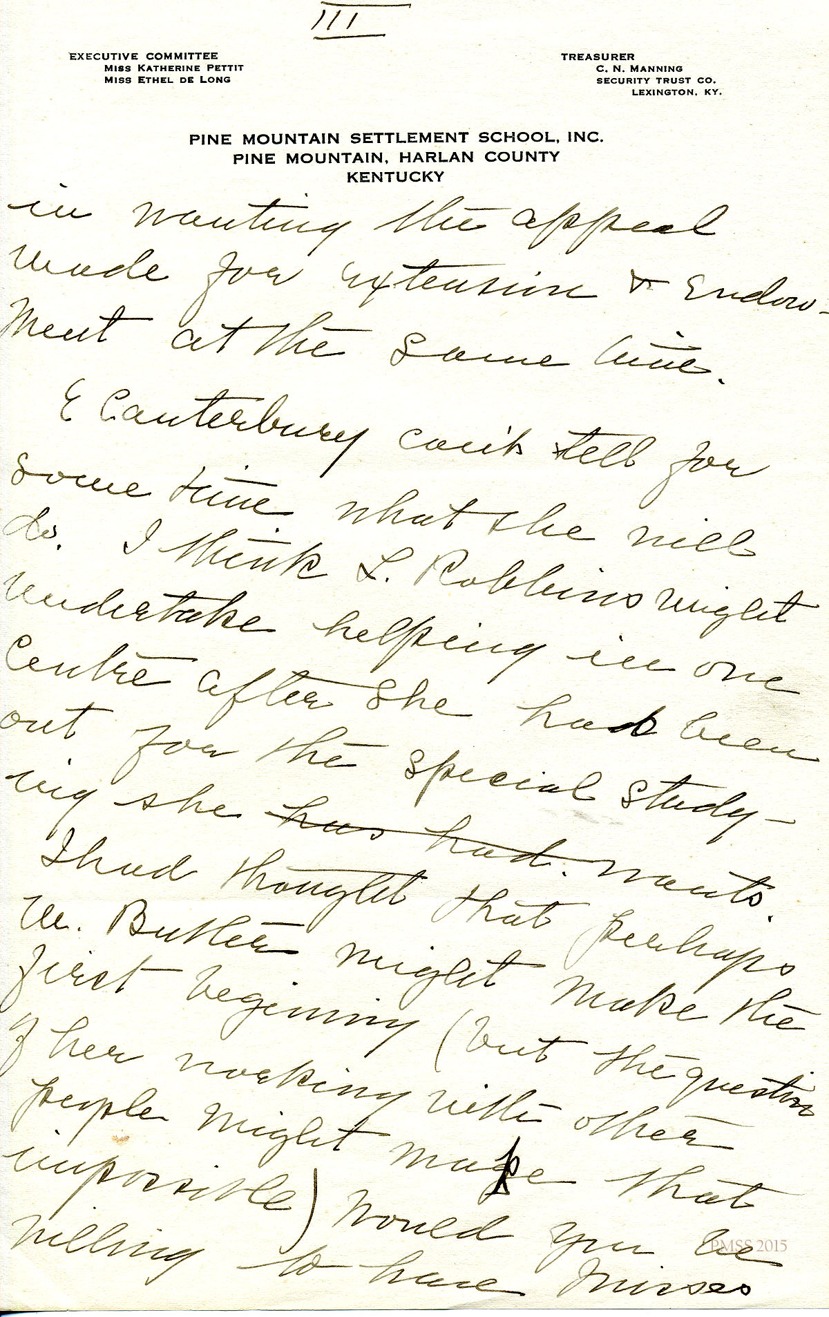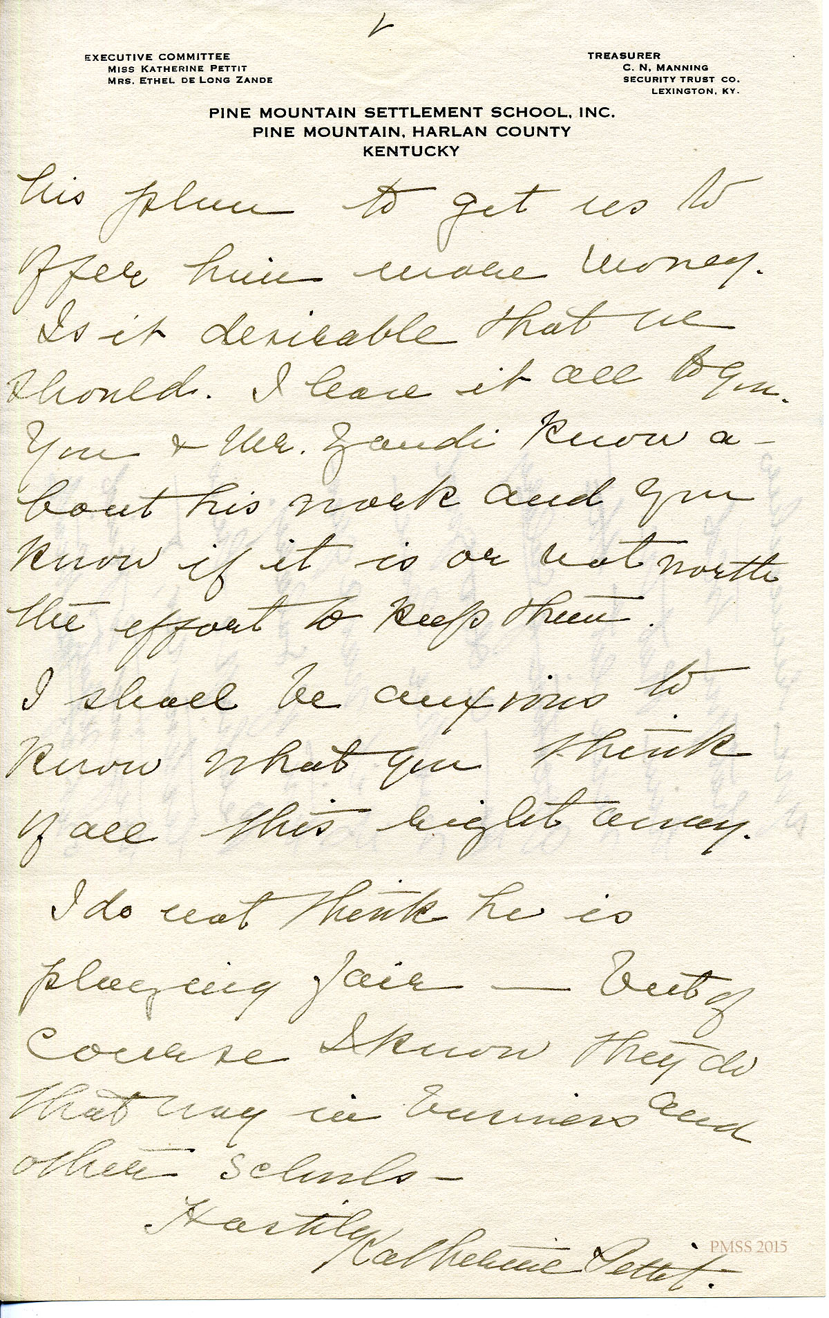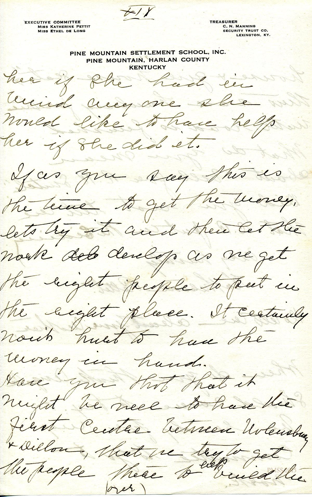 TAGS: Katherine Pettit, Ethel de Long Zande, Angela Melville, Fred Creech, Mr. Watkins, road-building, Henry Creech, Mr. Nolan, fundraising, extension work, Mr. and Mrs. Dorsay, Miss Sheltman, Miss Lawson, Rhoda Melinda, Minnie Bullock, Miss Robbins, Miss [Emily] Storer, Harriet Butler, convict labor, Annette Pettit, Line Fork, Walter Combs, furniture-makers, Mr. Leon Deschamps, surveys, mailing lists, Marguerite Butler, Josiah H. Cooke, Dr. Waller Bullock, Big Laurel, Peter Pan at May Day, Audrey Gratz, Nashville Agricultural Normal Institute, May Ritchie, Miss Parsons’ case, Celia Cathcart Holton