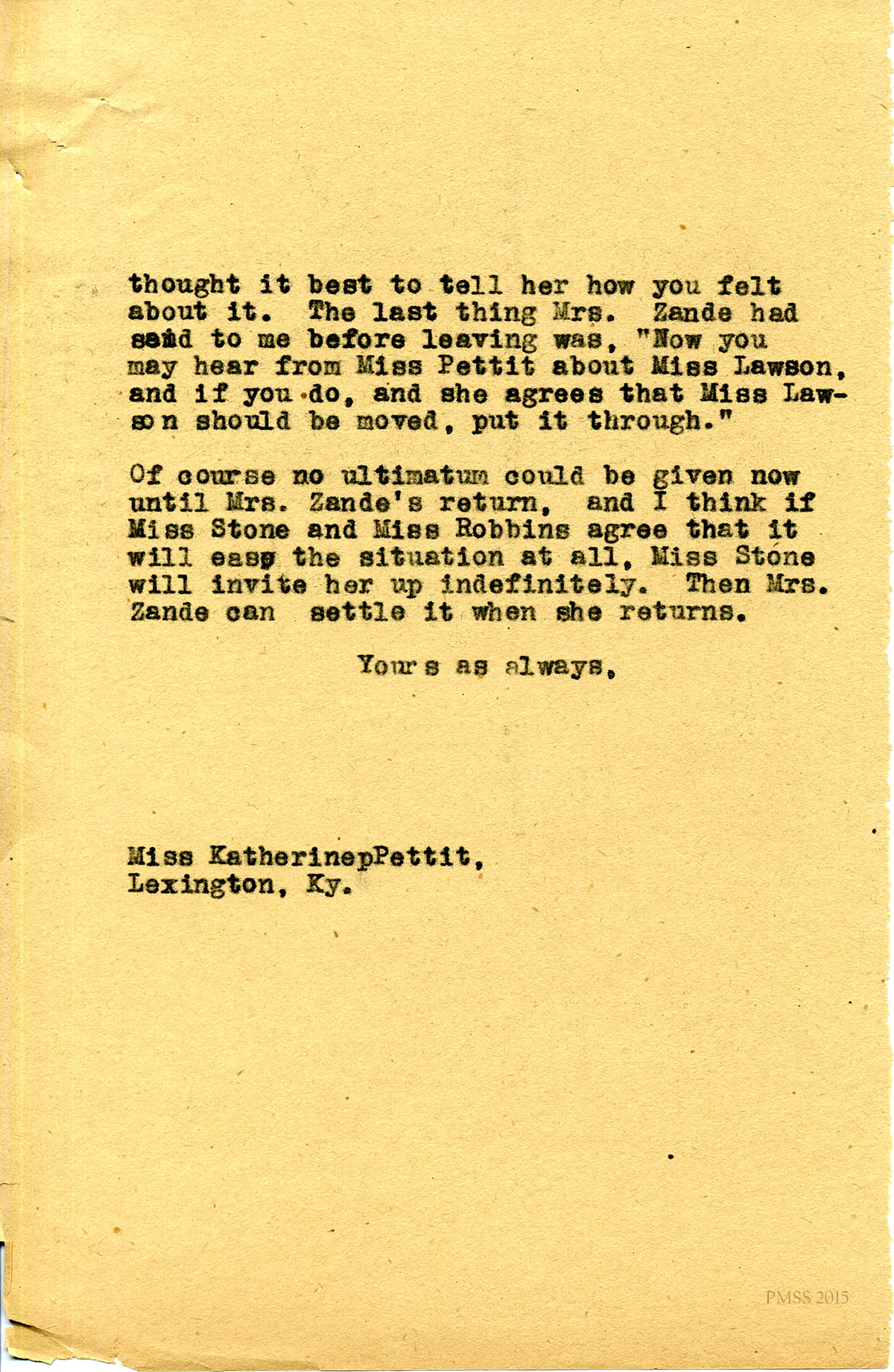 Katherine Pettit Correspondence